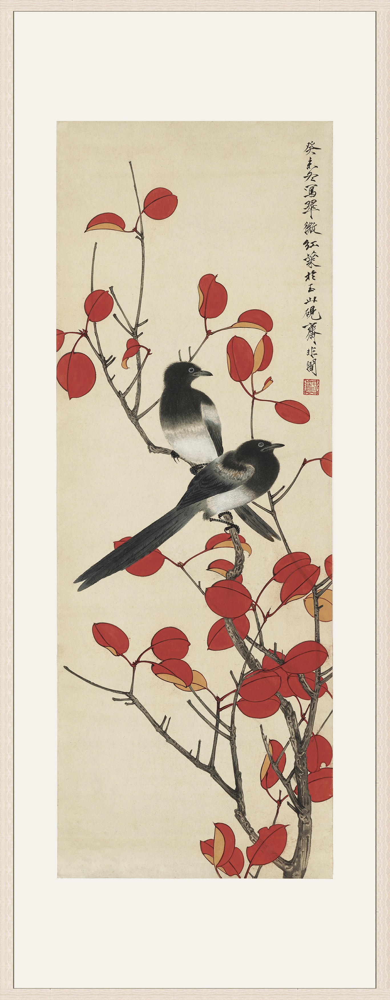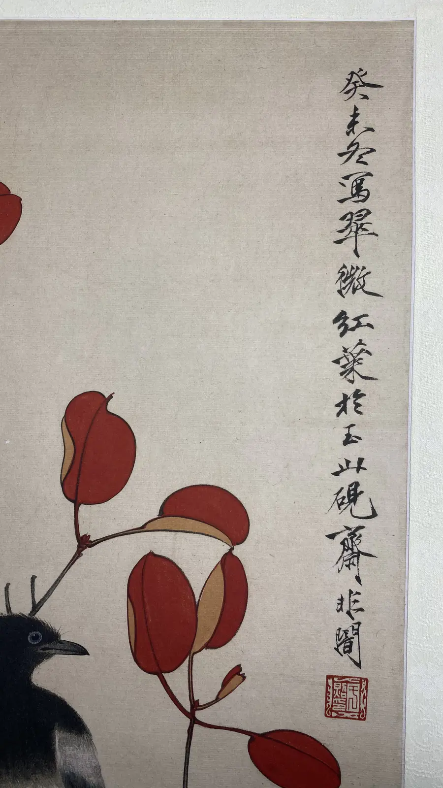 【定制书画】于非闇《翠微红叶图》纸本 镜片镶画框 成品 馆藏书画Gao仿复制艺术品(付款后28天内发货,顺丰快递请当场拆箱验收)