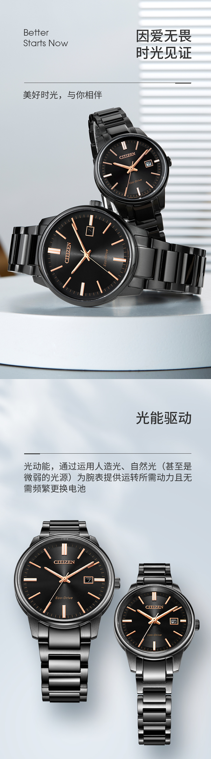 西铁城日本正品不锈钢覆BIP光动能时尚女表(情侣款)EW2597-86E