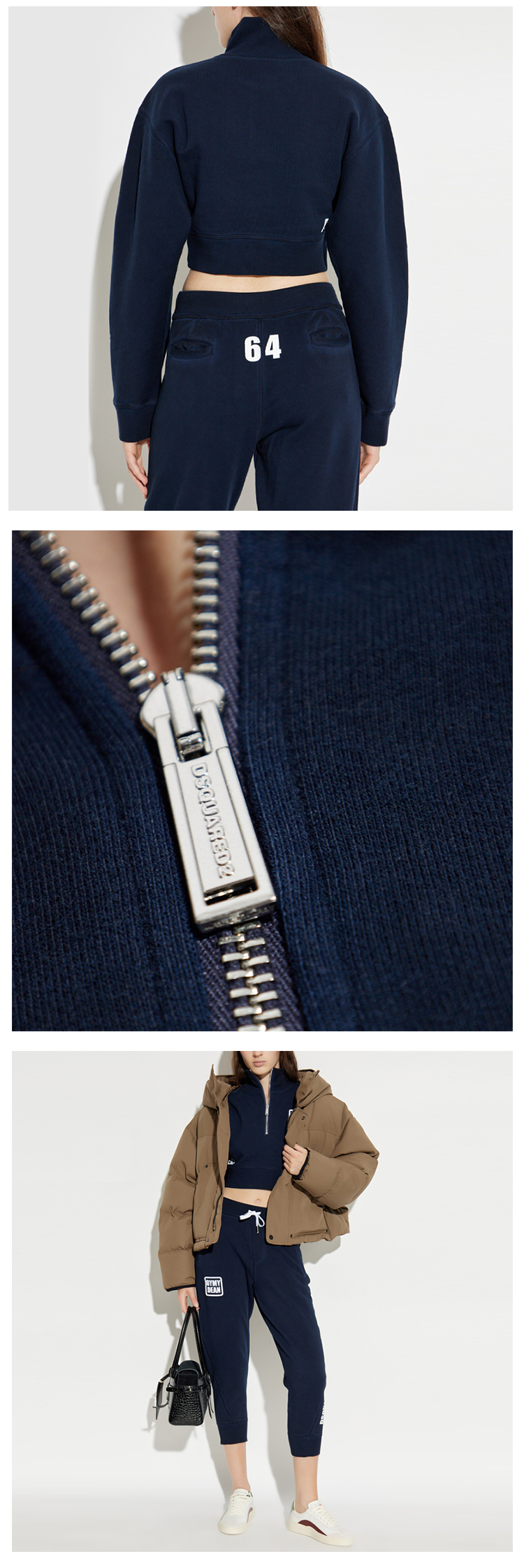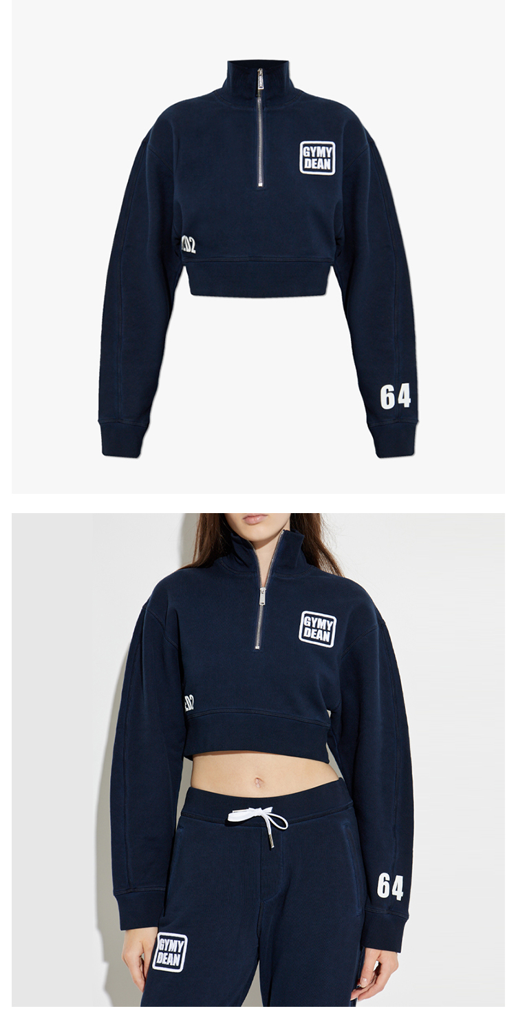DSQUARED2 女士字母徽标印花棉质短款卫衣 深蓝色 S75GU0604 S25030 524