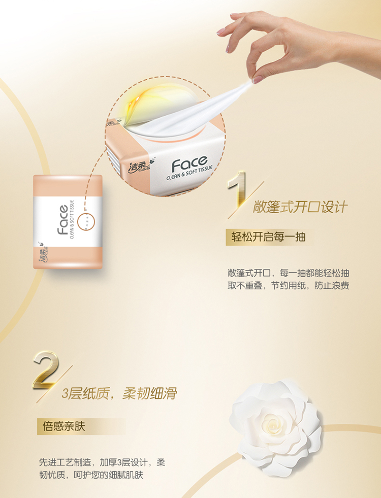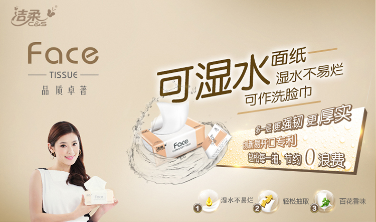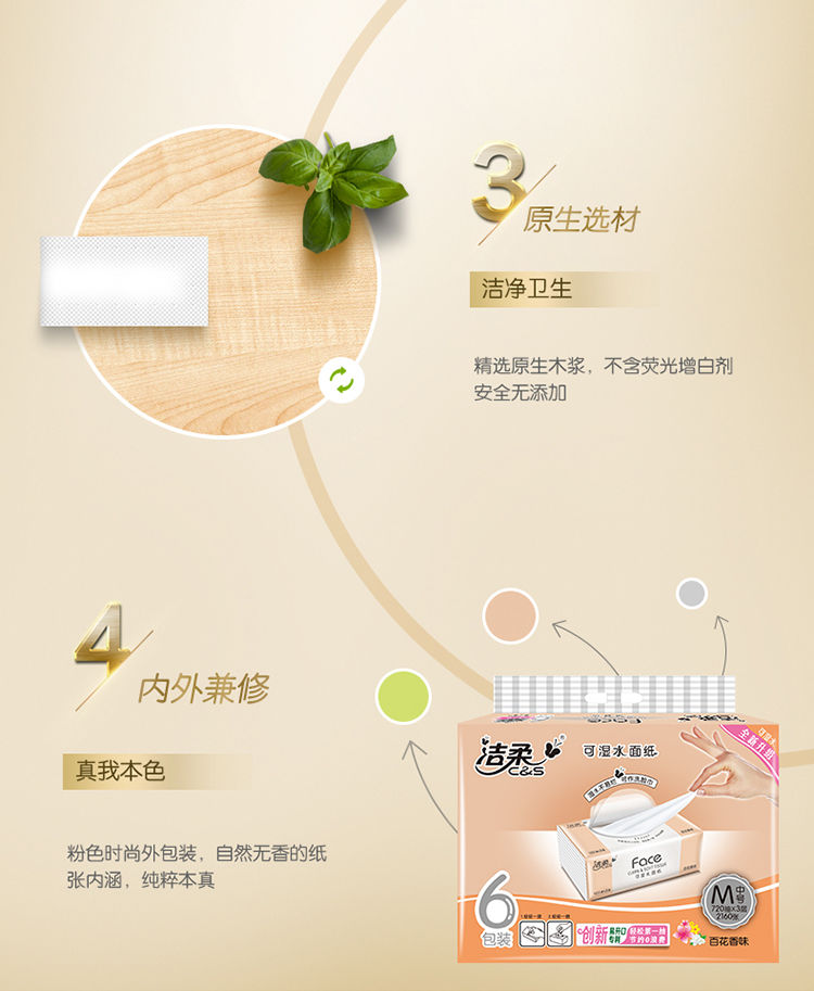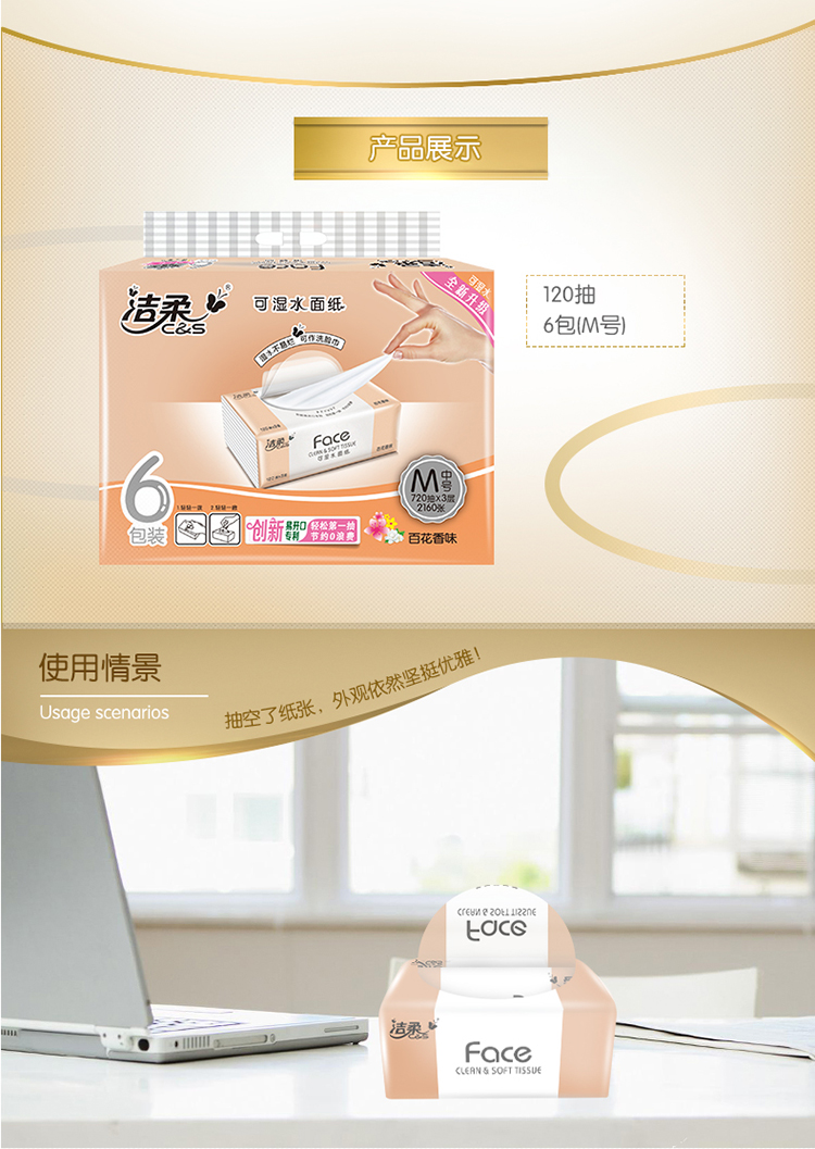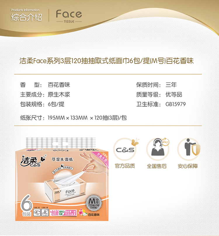 洁柔(C&S)抽纸 粉Face 百花香3层120抽面巾纸*6包 (M中号纸巾 面子系列可湿水)百花香芬 清新怡人