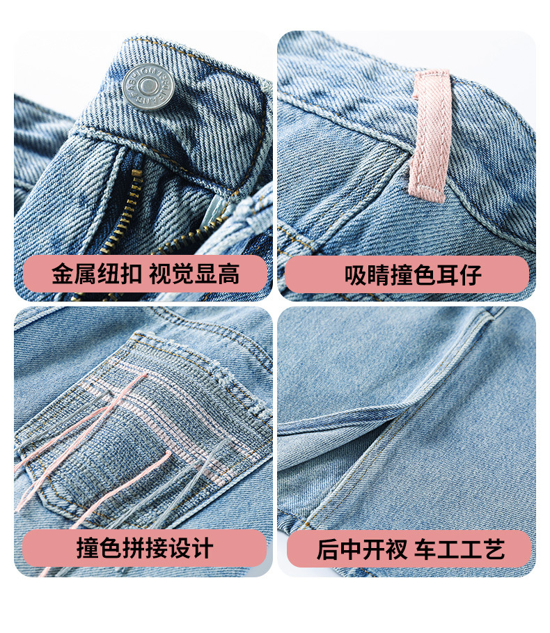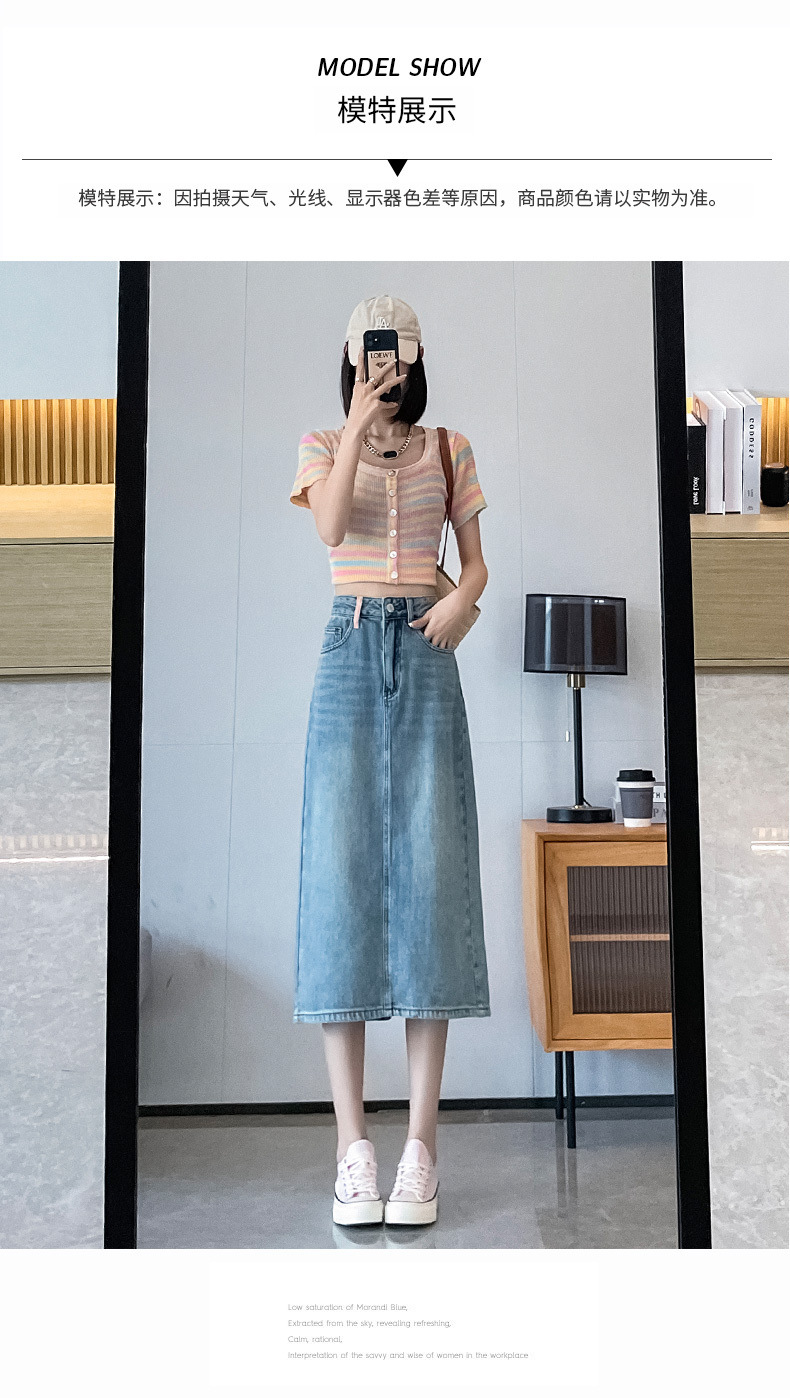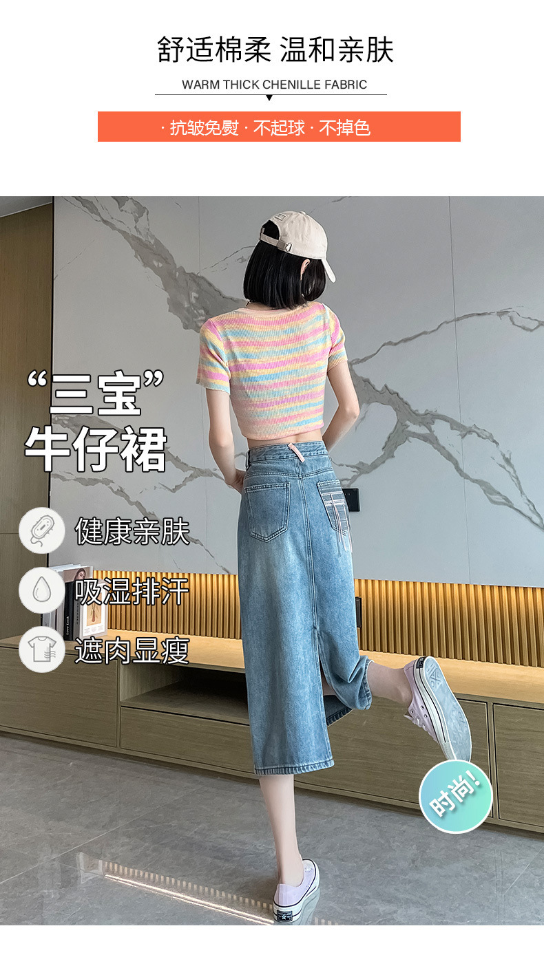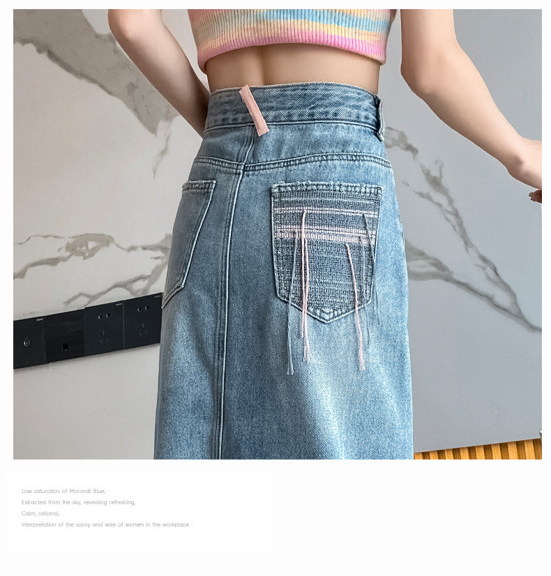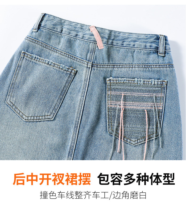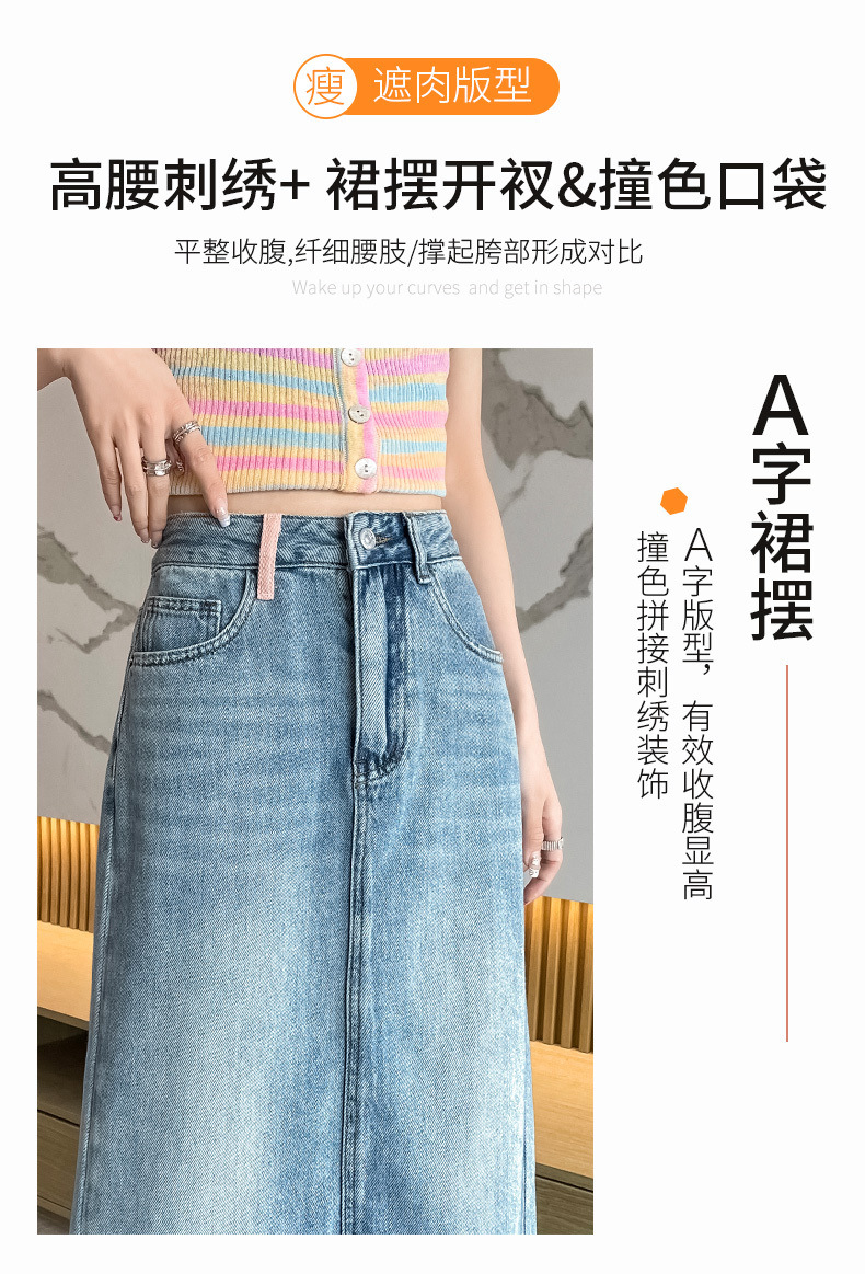「撞色口袋设计」设计感高腰牛仔半身裙 女夏季2023年新款中长款a字包臀裙下装