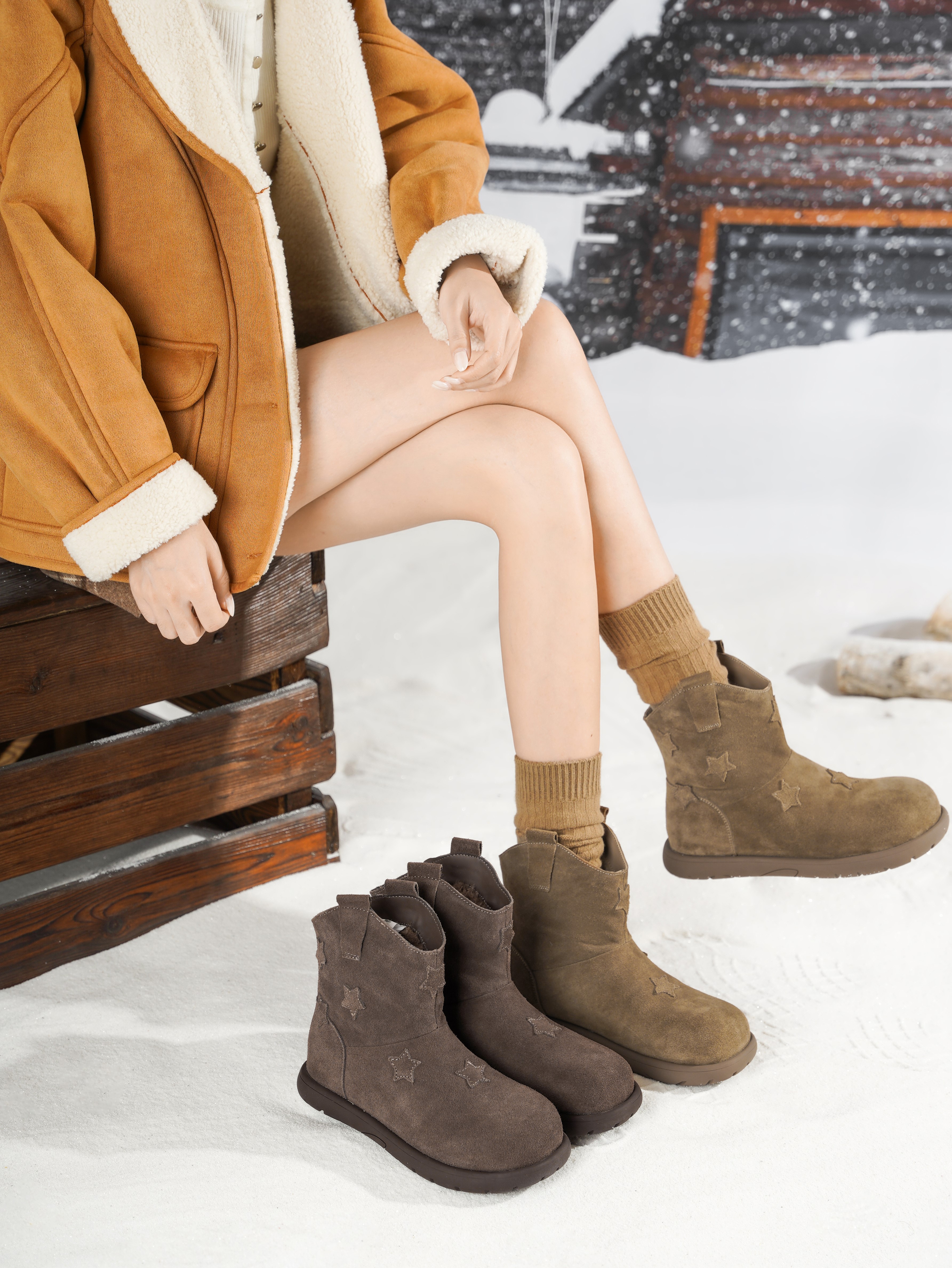 西村名物2025年冬季新款厚底防滑绒面舒适时尚切尔西靴时装短靴T25DS49301