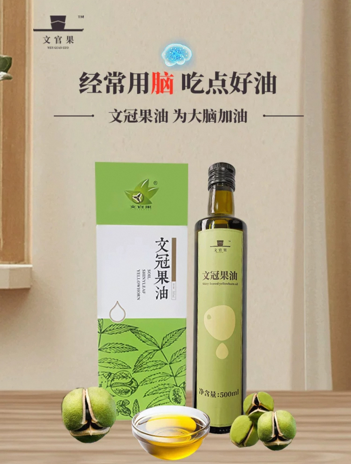 文官果文冠果油协和研发 含神经酸无添加炒菜食用油500ml(WGY5001)