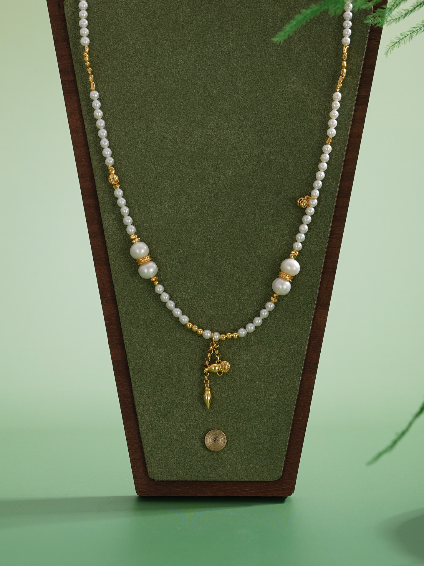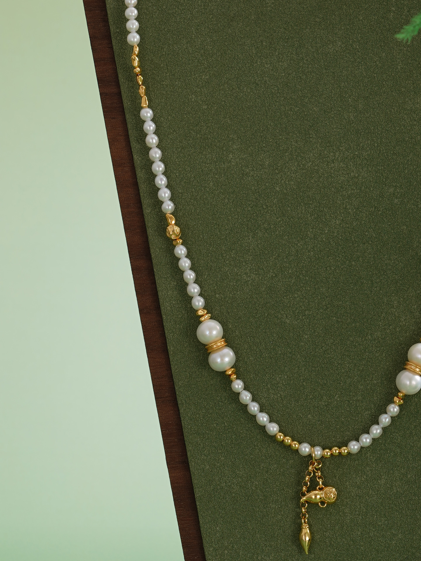 子佩集【福禄之命】银S925珍珠项链【QNX0005】3mm小珠6.8mm大珠镀金葫芦2512