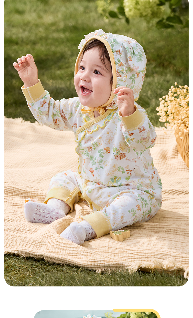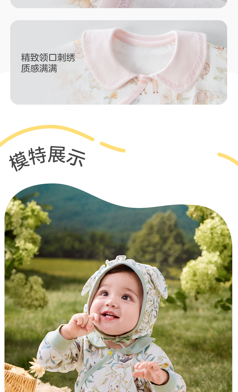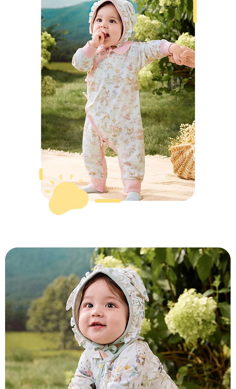 粒粒阳光婴儿衣服精灵森系连体衣阳光棉哈衣宝宝爬服新款