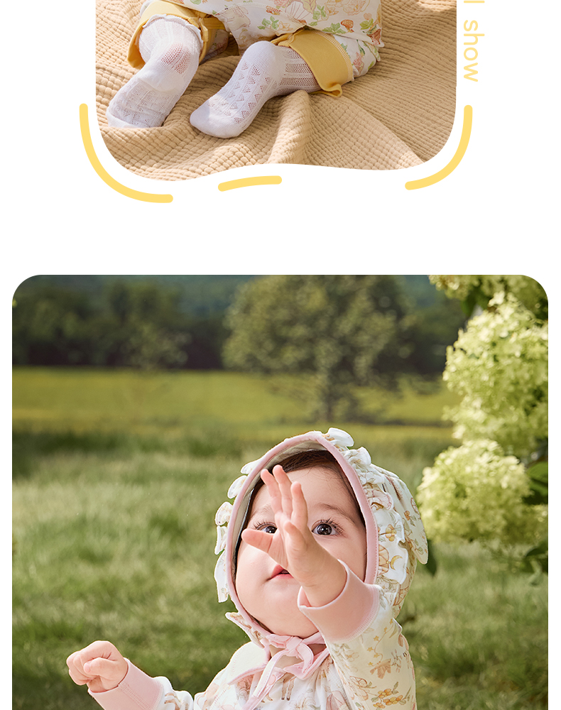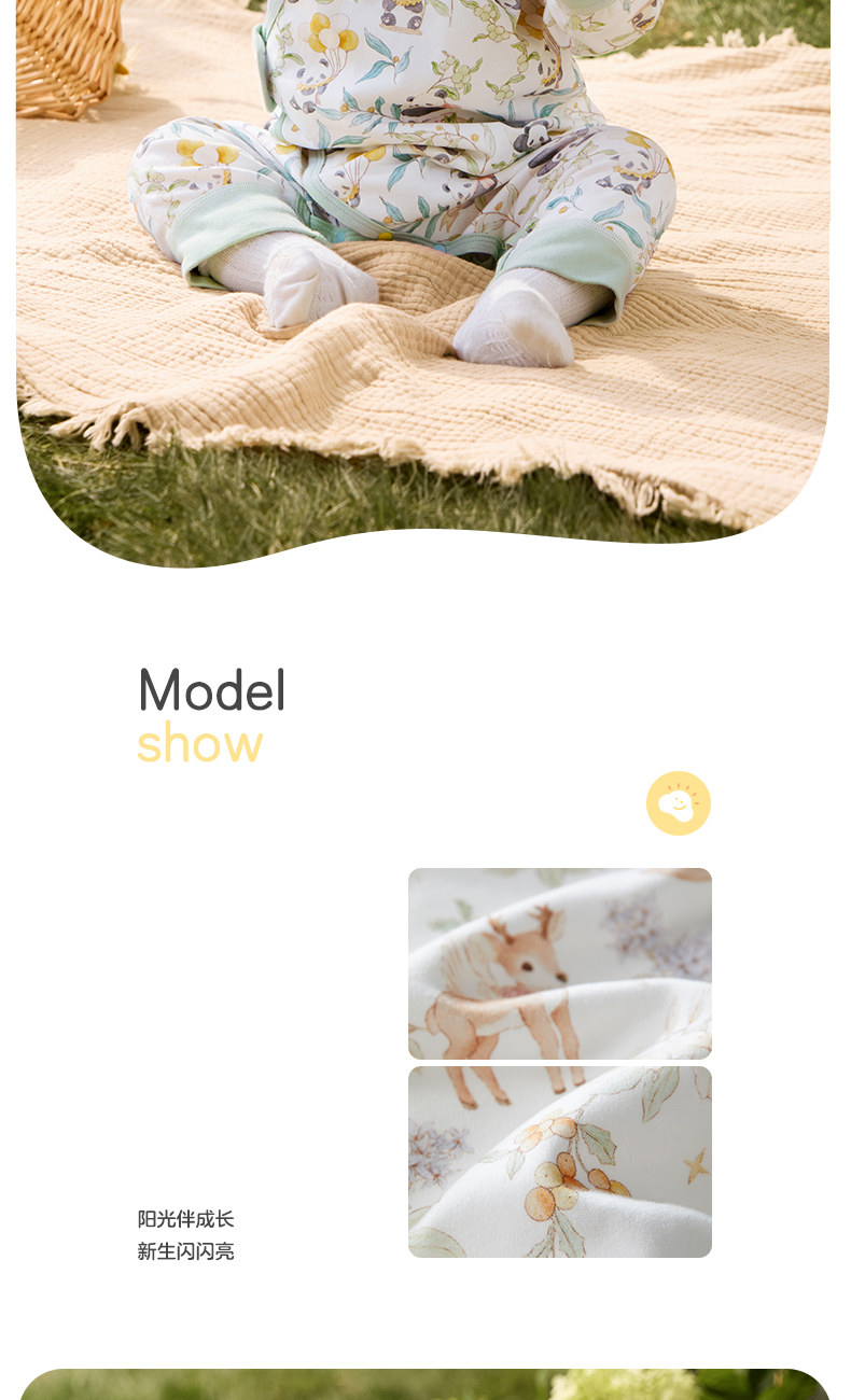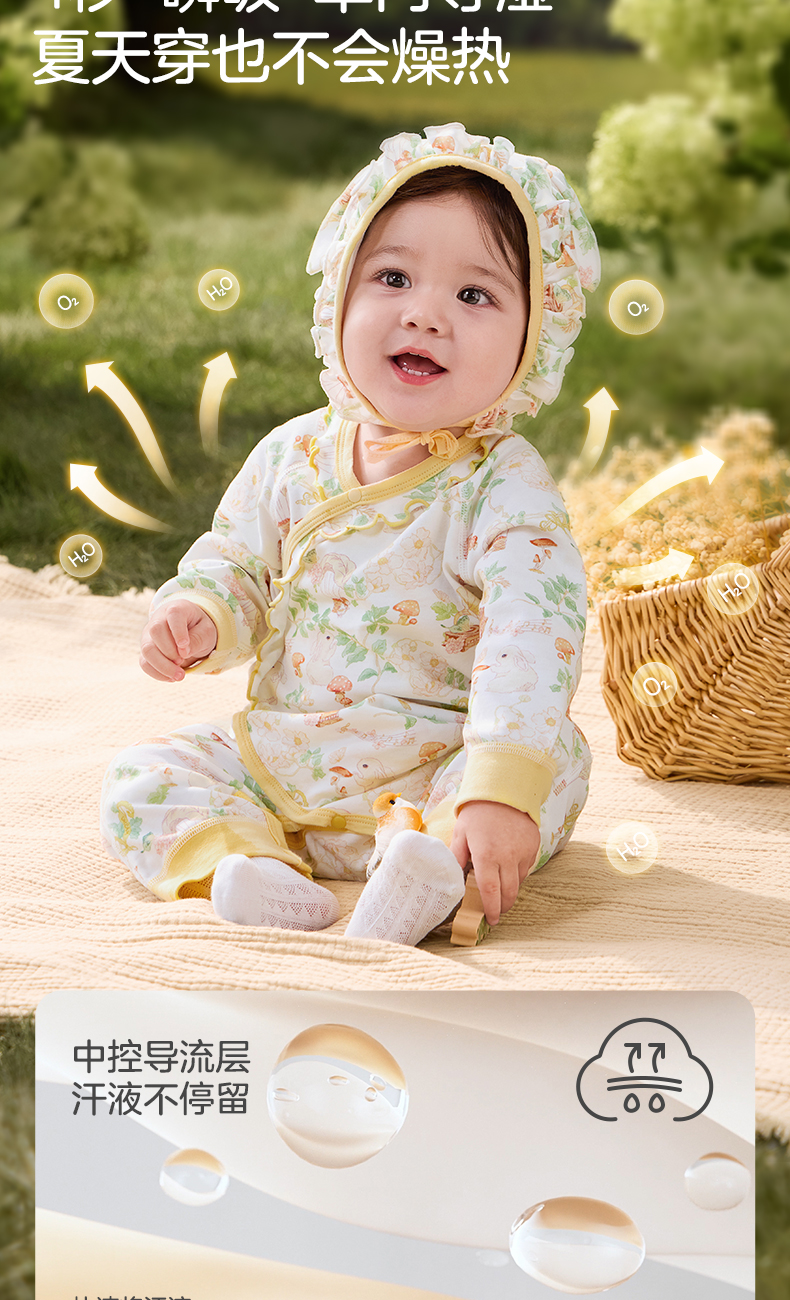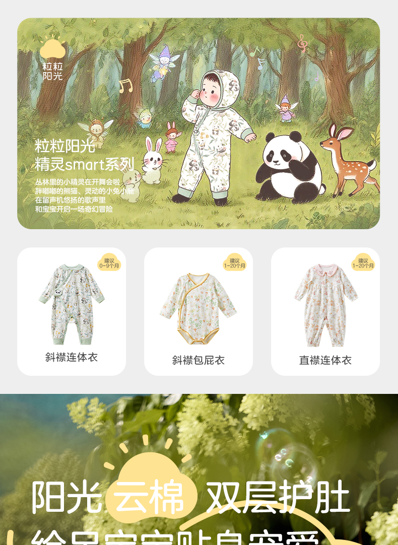 粒粒阳光婴儿衣服精灵森系连体衣阳光棉哈衣宝宝爬服新款