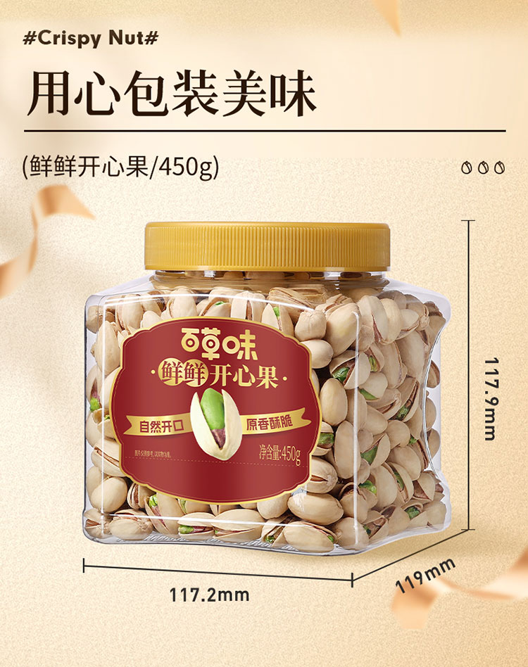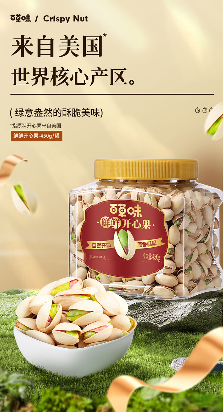 【百草味】鲜鲜开心果450g(罐装)-DY
