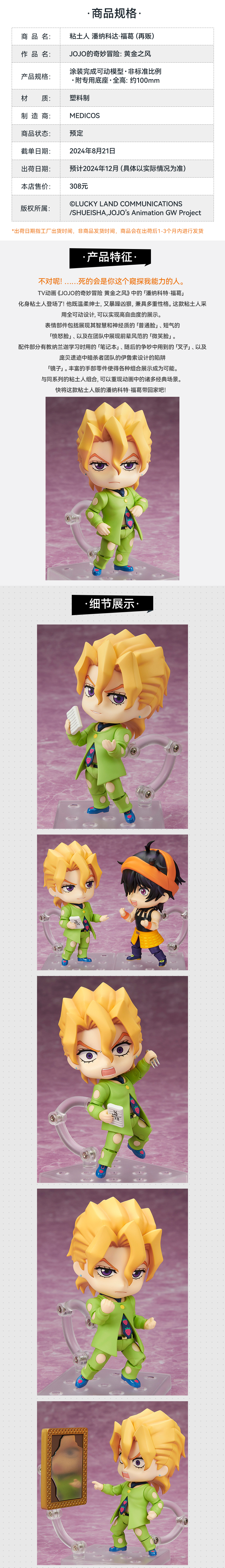 【GSC现货】粘土人 潘纳科达·福葛 JOJO的奇妙冒险:黄金之风
