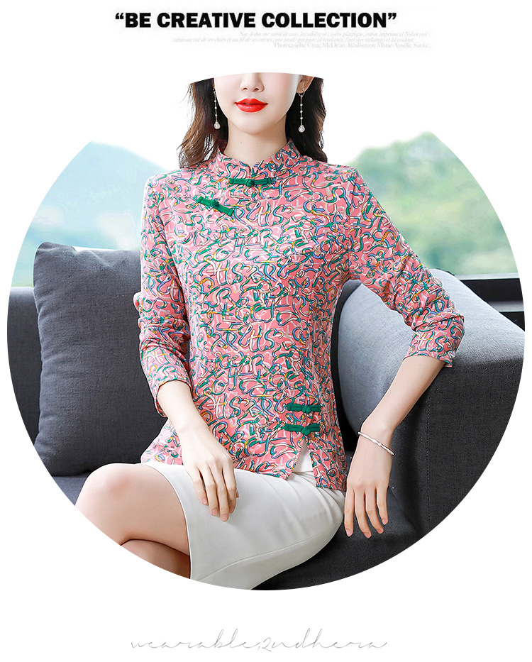2023春季新款盘扣洋气立领遮肚国风衬衫上衣KQL-E324N9607