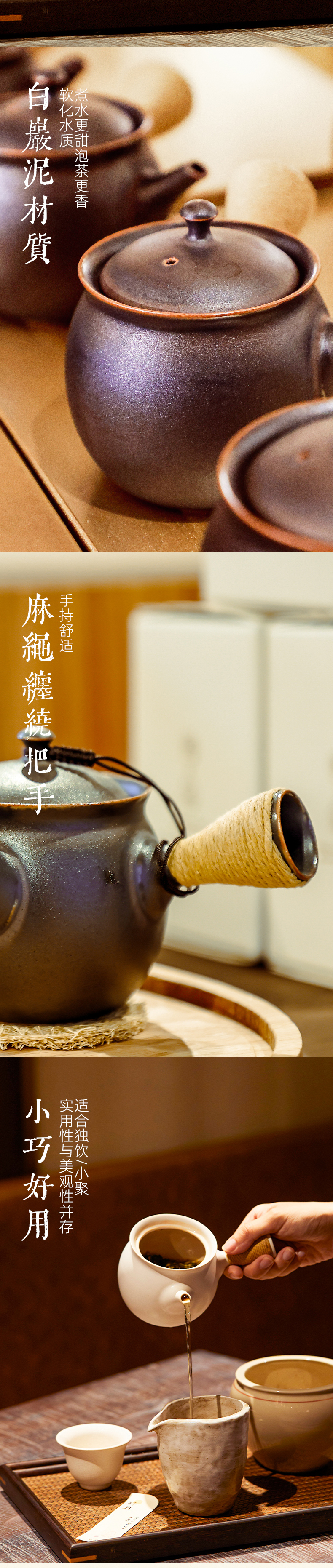 顺时而饮 | 侧把小壶 复古简约 可用明火/炭火/电陶炉(白色 深褐色 )