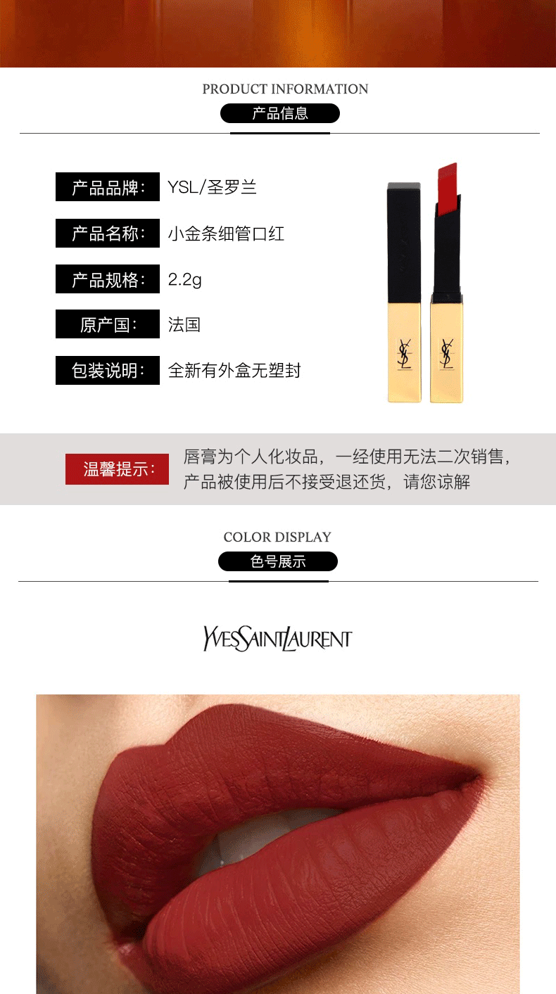 YSL圣罗兰细管纯口红小金条2.2g 红棕色 / 番茄色 A-5122
