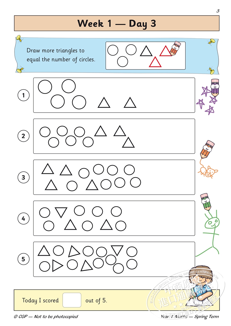 这套New KS1 Maths Daily Practice Book就能化解这个矛盾,它的练习形式生动有趣,插画丰富多彩,形象活泼可爱,让孩子每天都能沉浸在数学学习的快乐中。