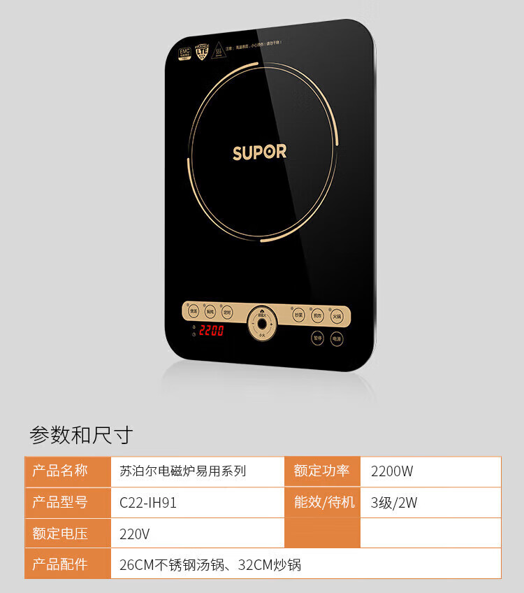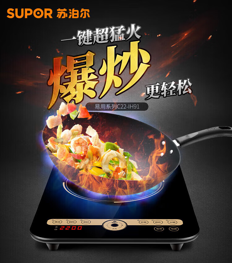 苏泊尔(SUPOR)电磁炉ZMD安心系列 大功率触控 六大功能 大面板 定时功能配双锅 C22-IH91