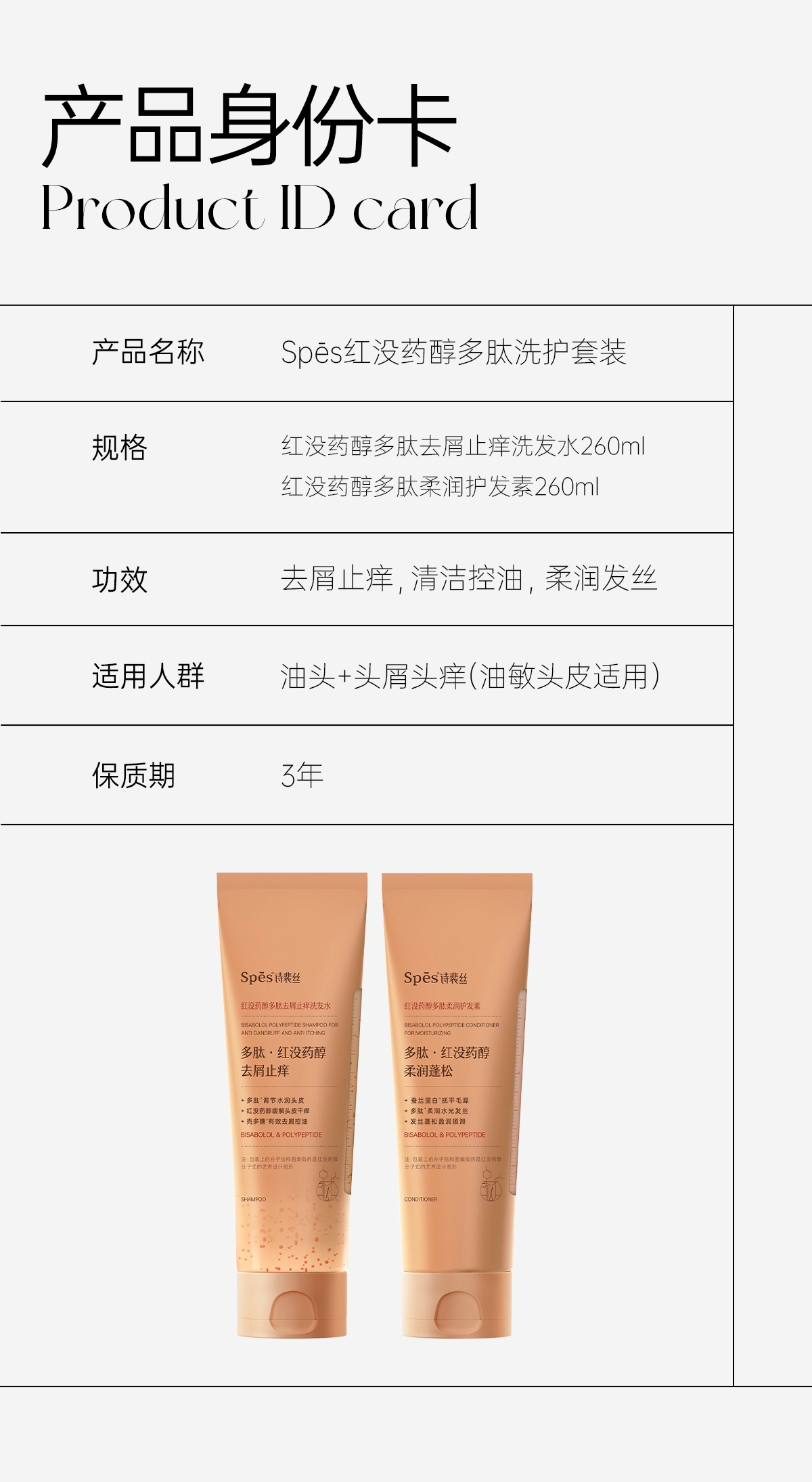 诗裴丝红没药醇多肽洗护套装 红没药醇多肽去屑止痒洗发水 红没药醇柔润护发素 260ml 长效控油 渗透舒缓