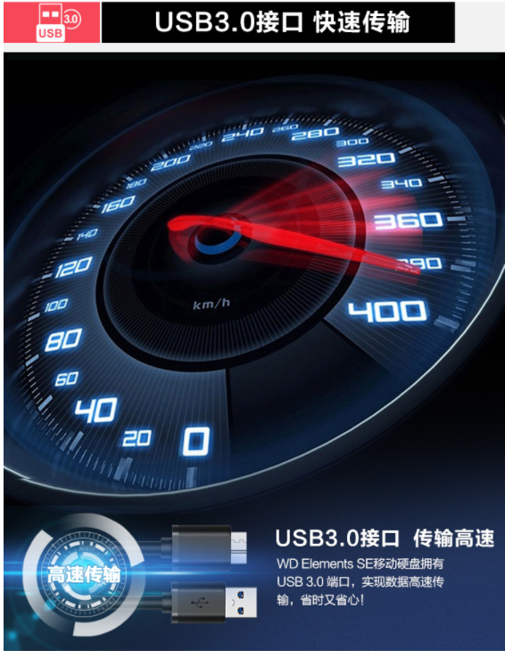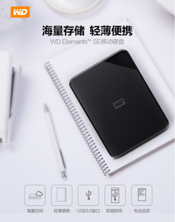 西部数据(WD)2TB USB3.0移动硬盘Elements SE 新元素系列2.5英寸(稳定耐用 海量存储)WDBEPK0020BBK