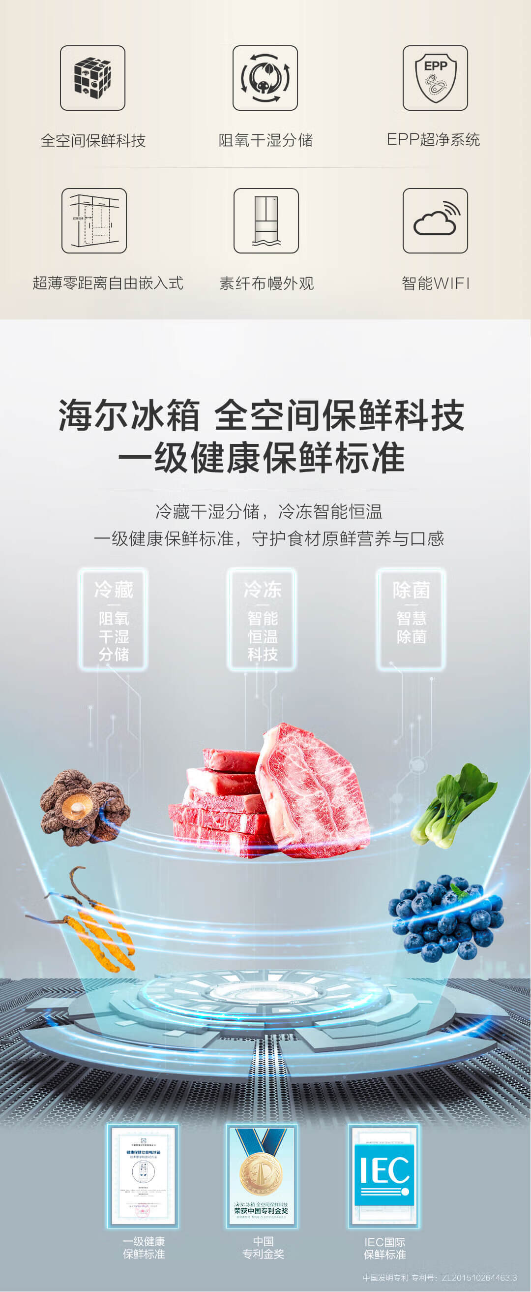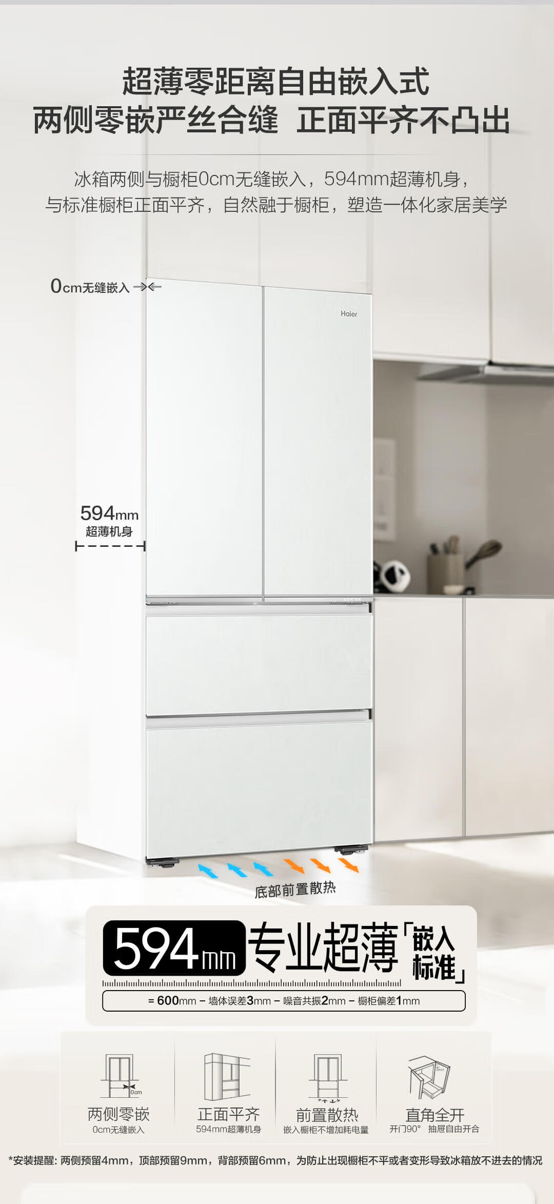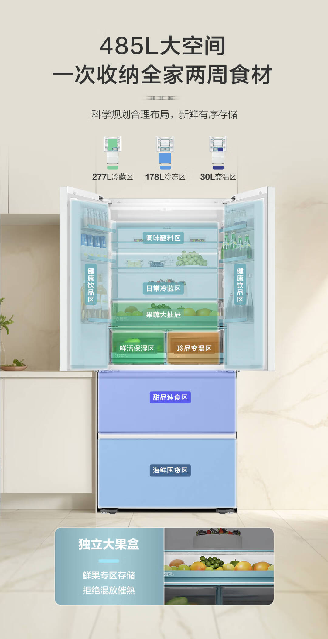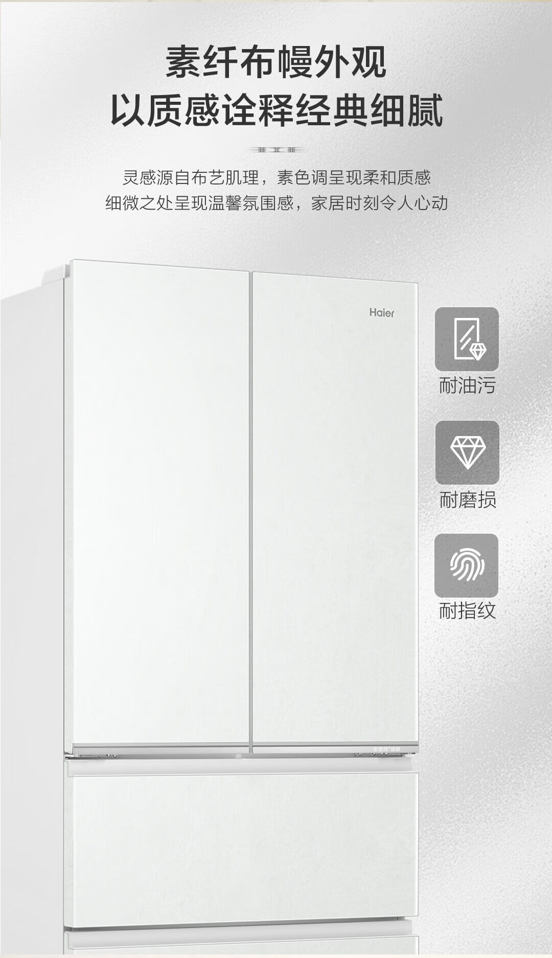 海尔(Haier)485升 全空间保鲜 594mm超薄 零嵌EPP 超净母婴空间 素纤布幔彩晶多门冰箱BCD-485WGHFD1BWGU1