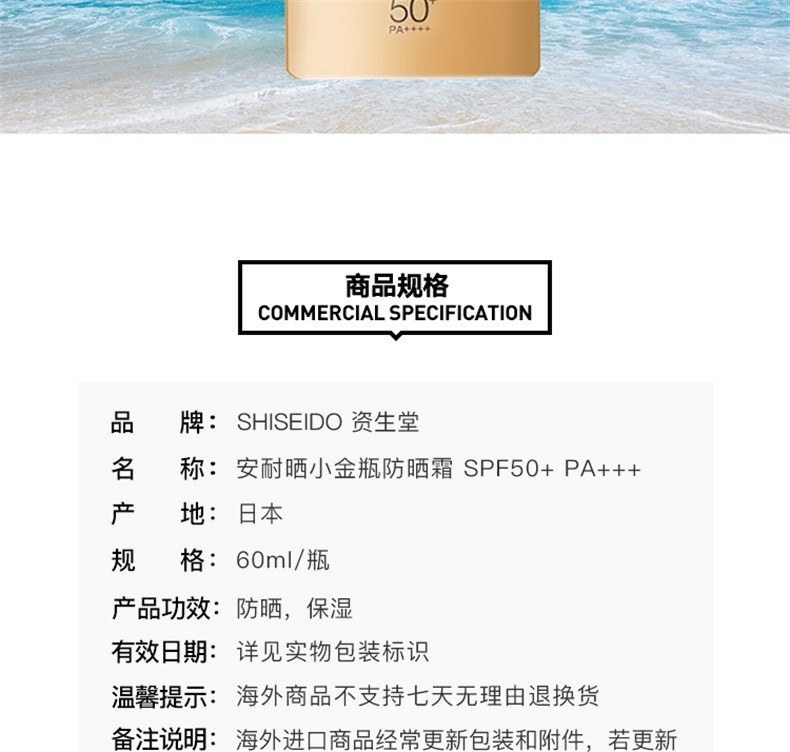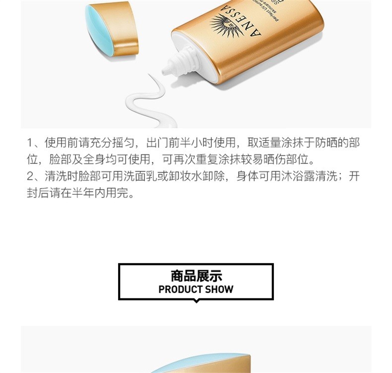 ANESSA/安热沙 安耐晒 防晒滋润露 金瓶 SPF50 60ML