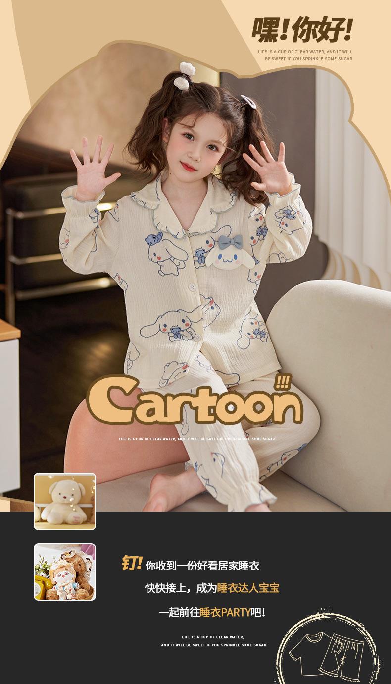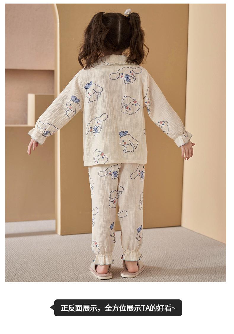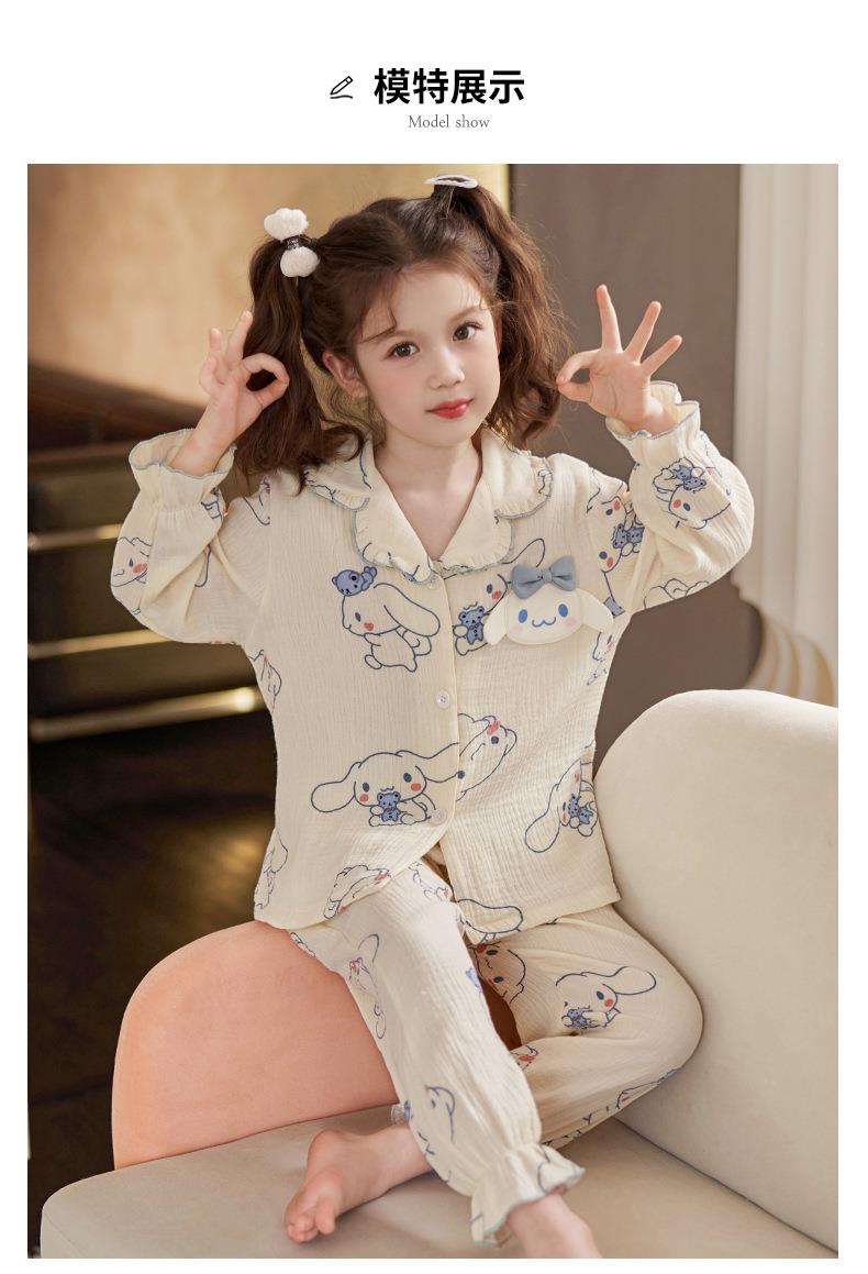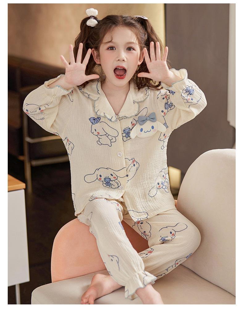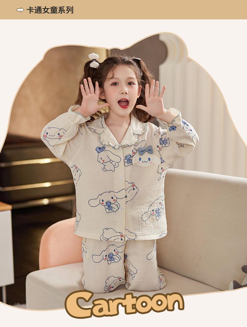 儿童睡衣女童纯棉薄款夏季长袖纱布棉春秋小女孩洋气卡通宝宝套装