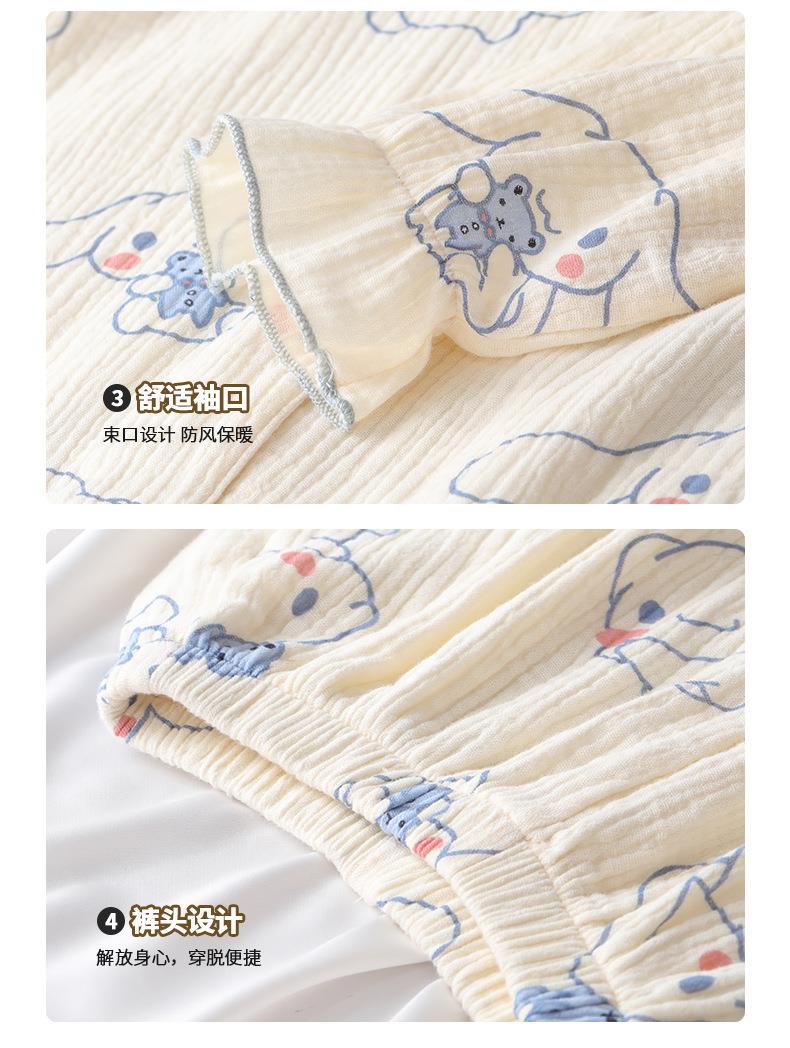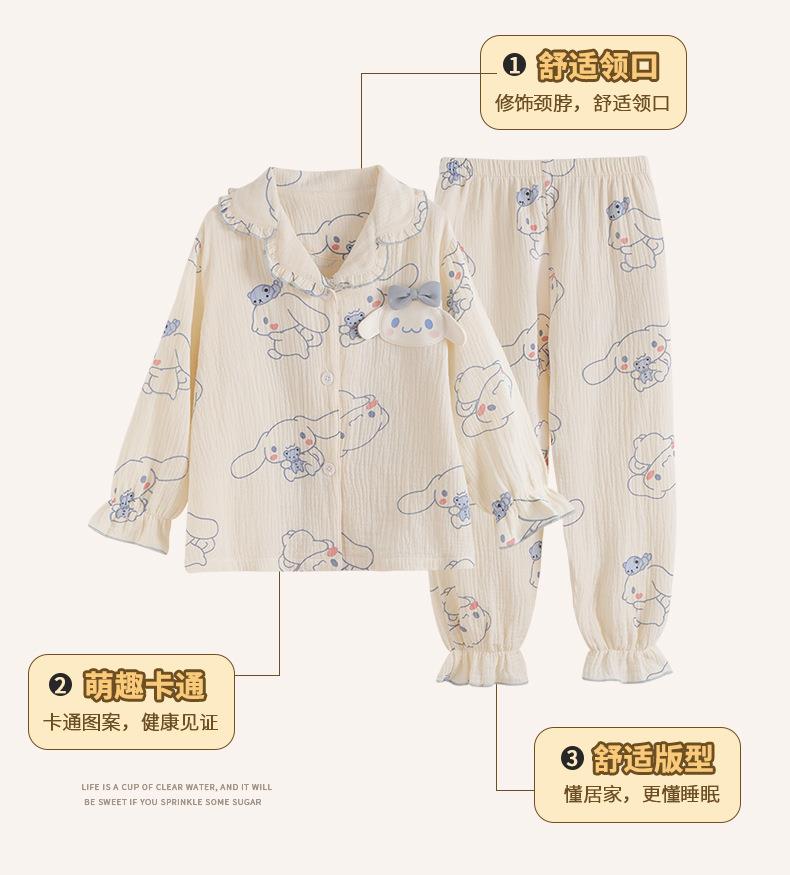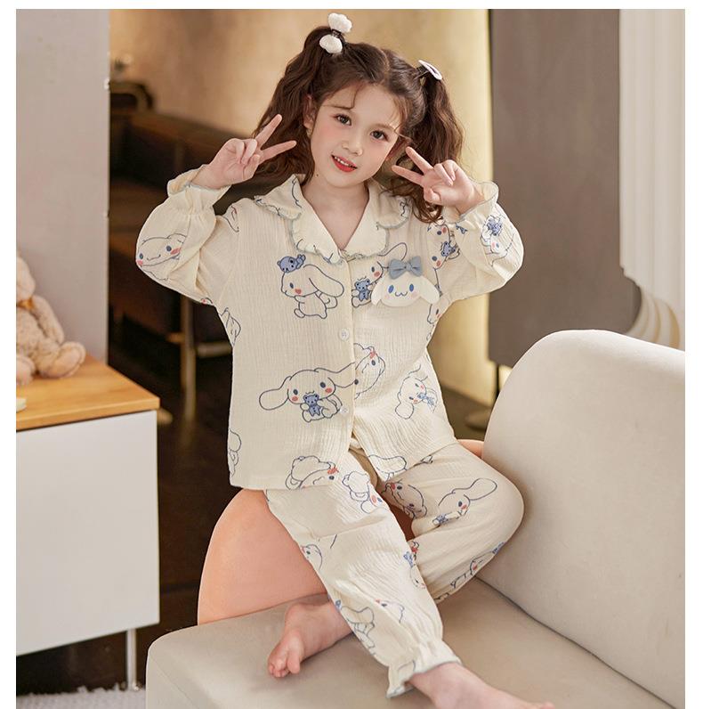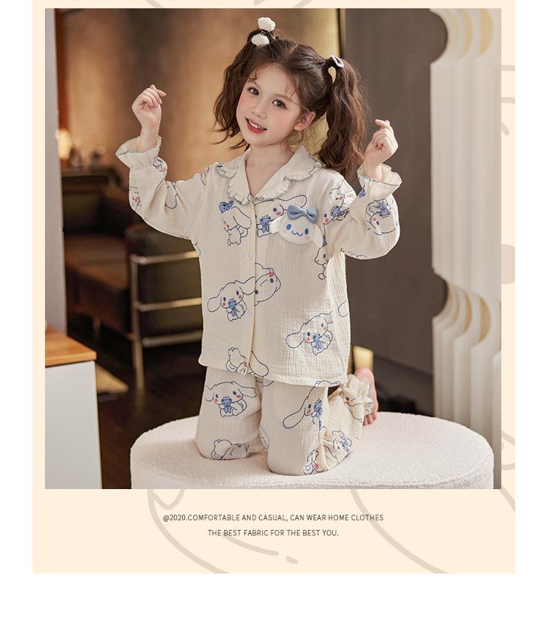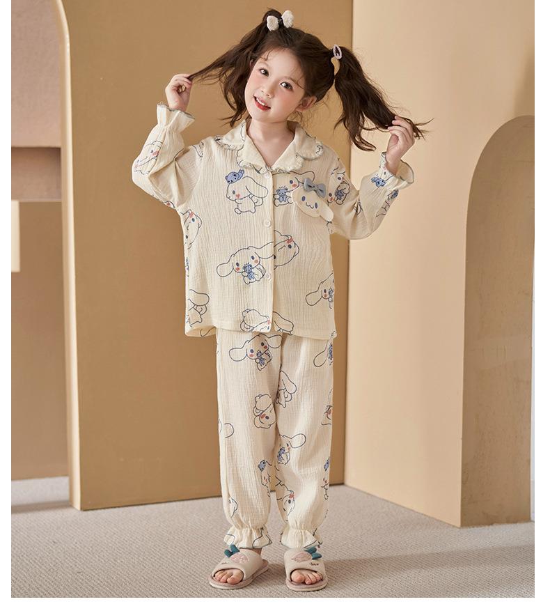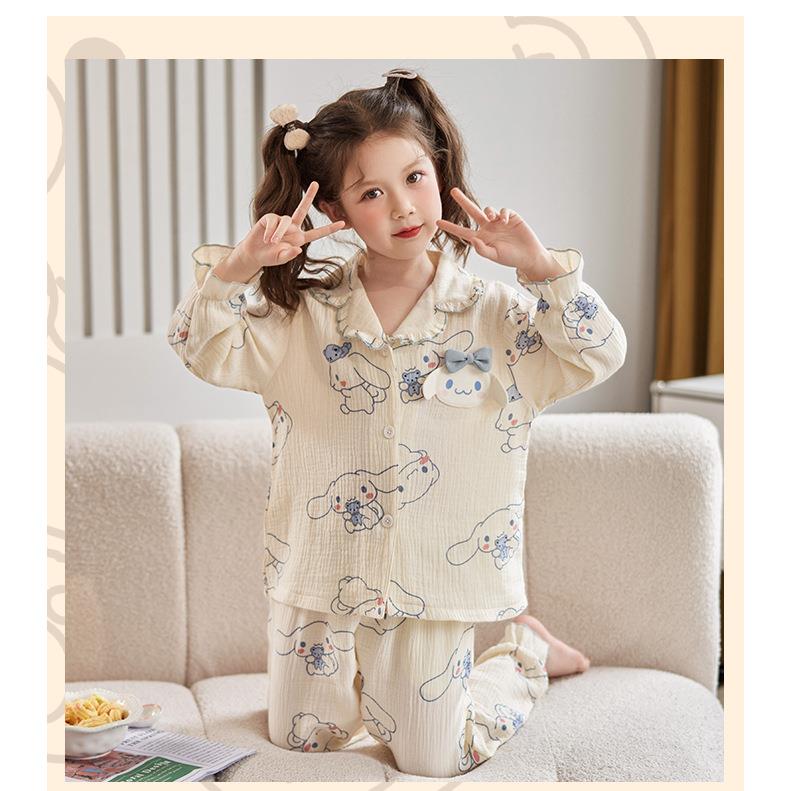 儿童睡衣女童纯棉薄款夏季长袖纱布棉春秋小女孩洋气卡通宝宝套装