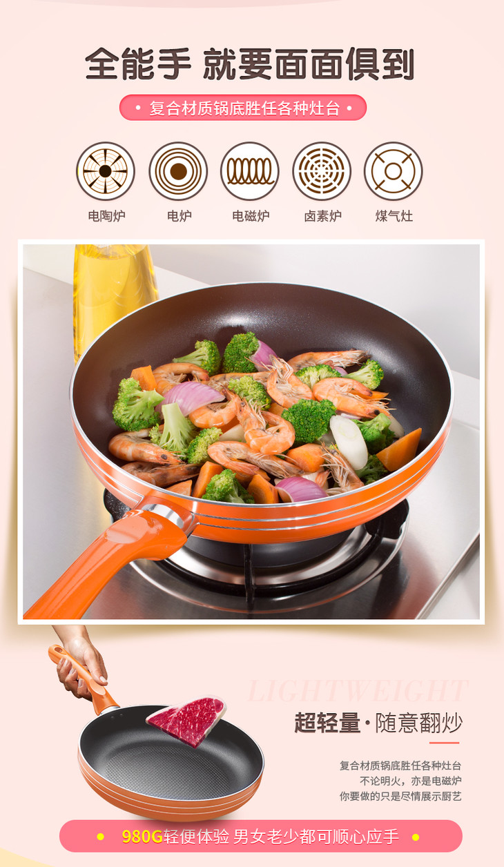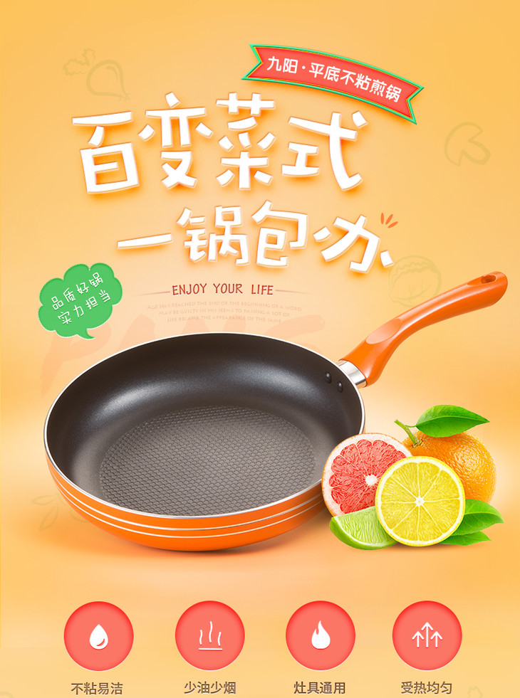 Joyoung/九阳(509232)JLW2601D平底锅 不粘锅无油烟煎锅煎饼牛排蛋迷你小电磁炉燃气灶通用