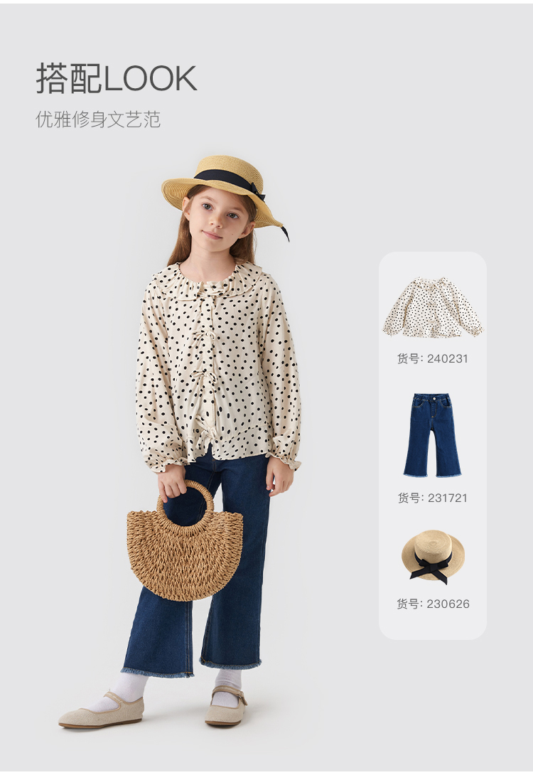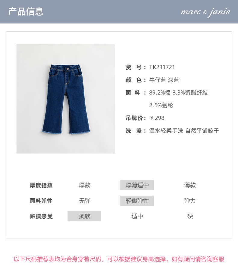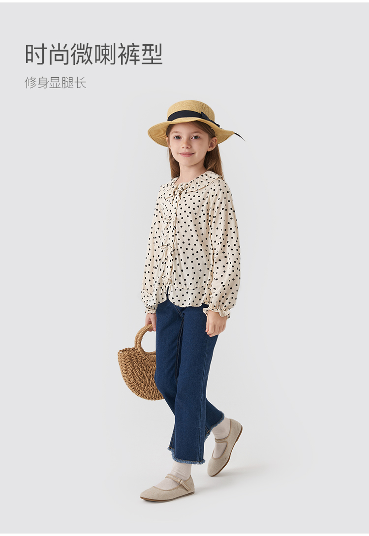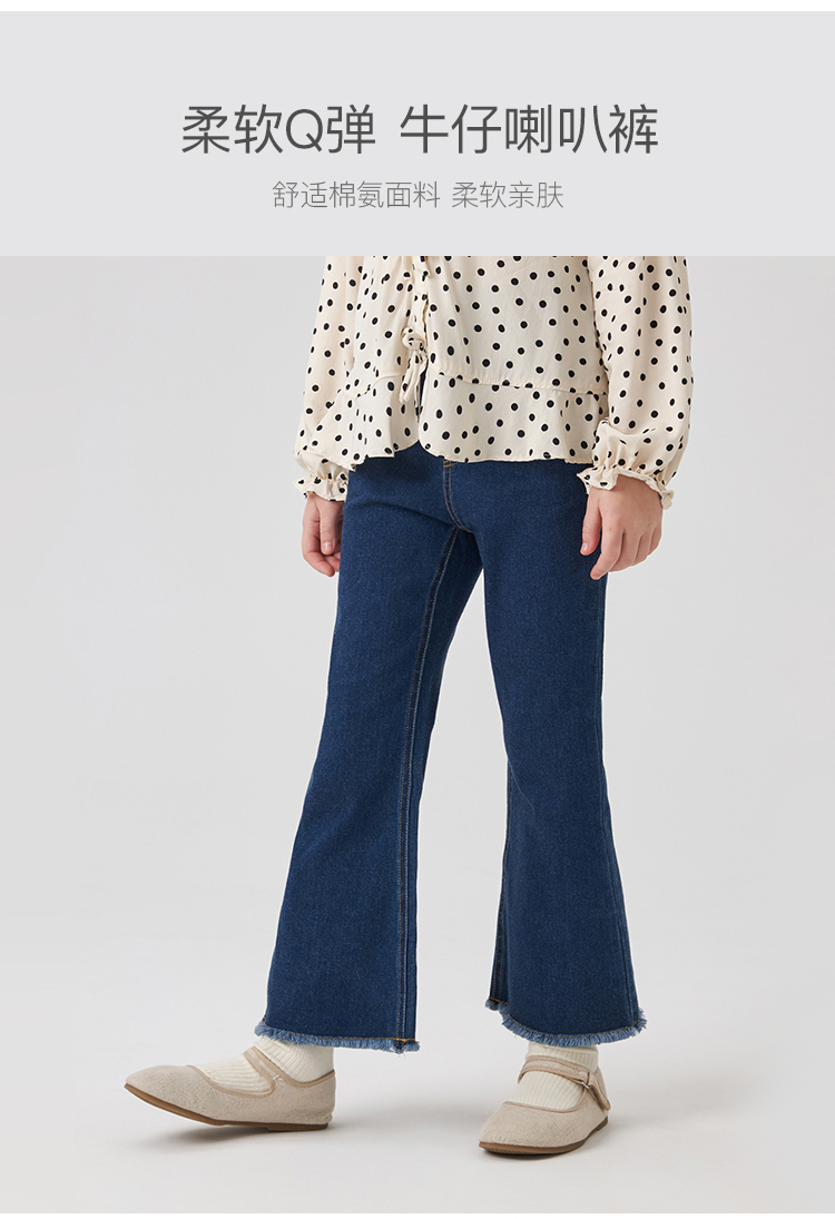 马克珍妮秋装新款 女童修身弹力牛仔喇叭裤儿童裤子231721
