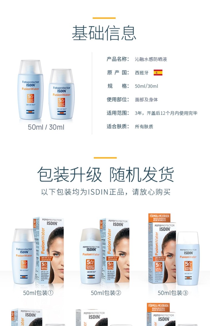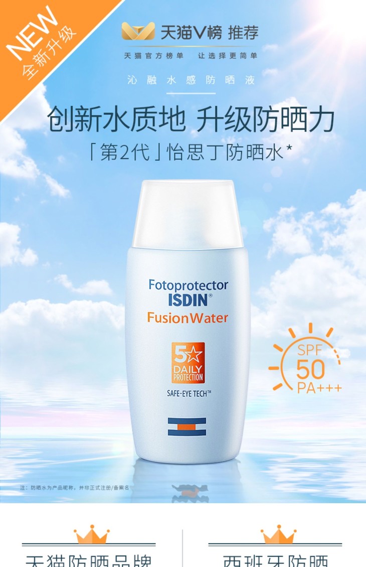 西班牙 ISDIN怡思丁 防水清爽防晒霜 SPF50++ 50ml
