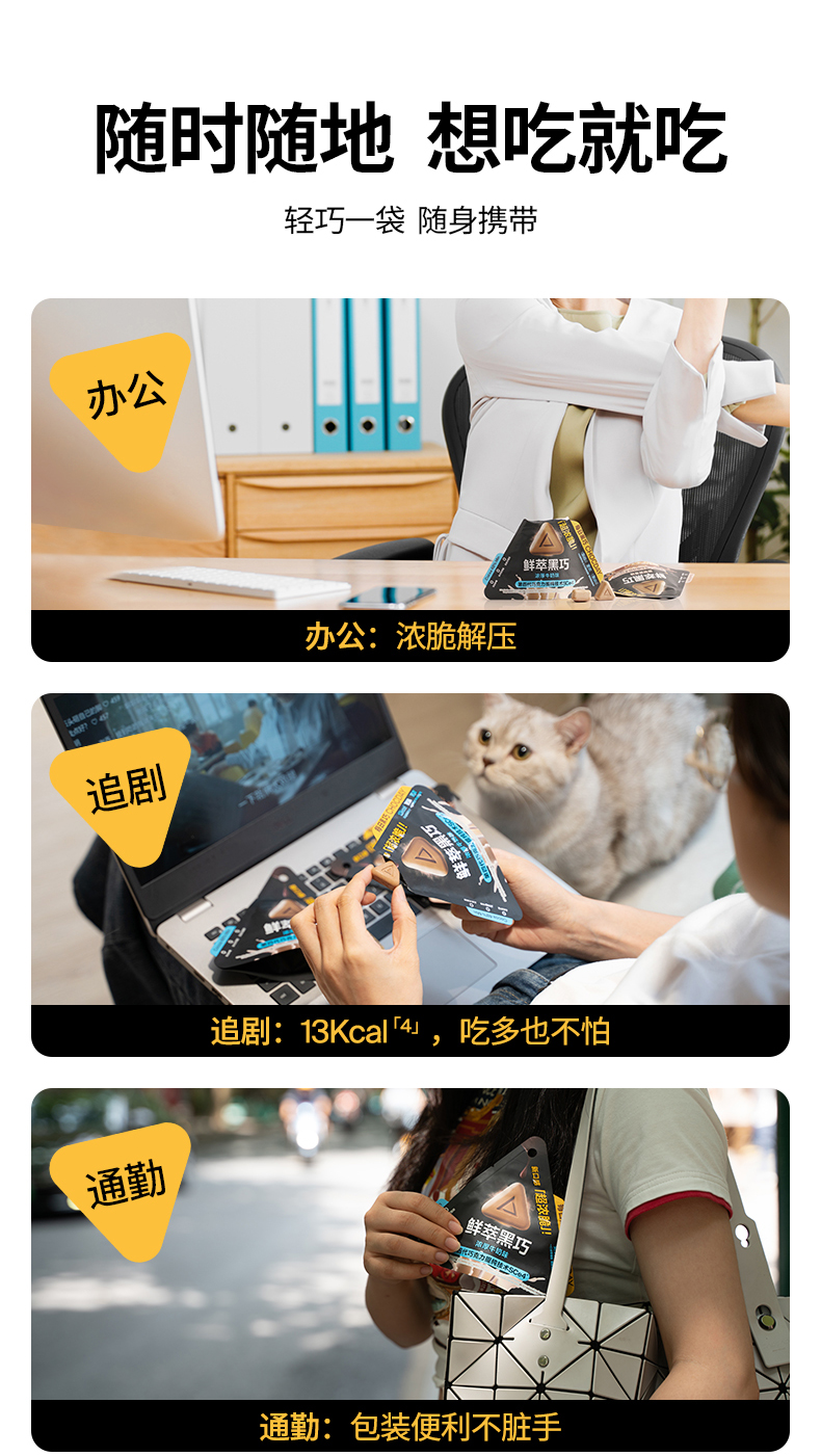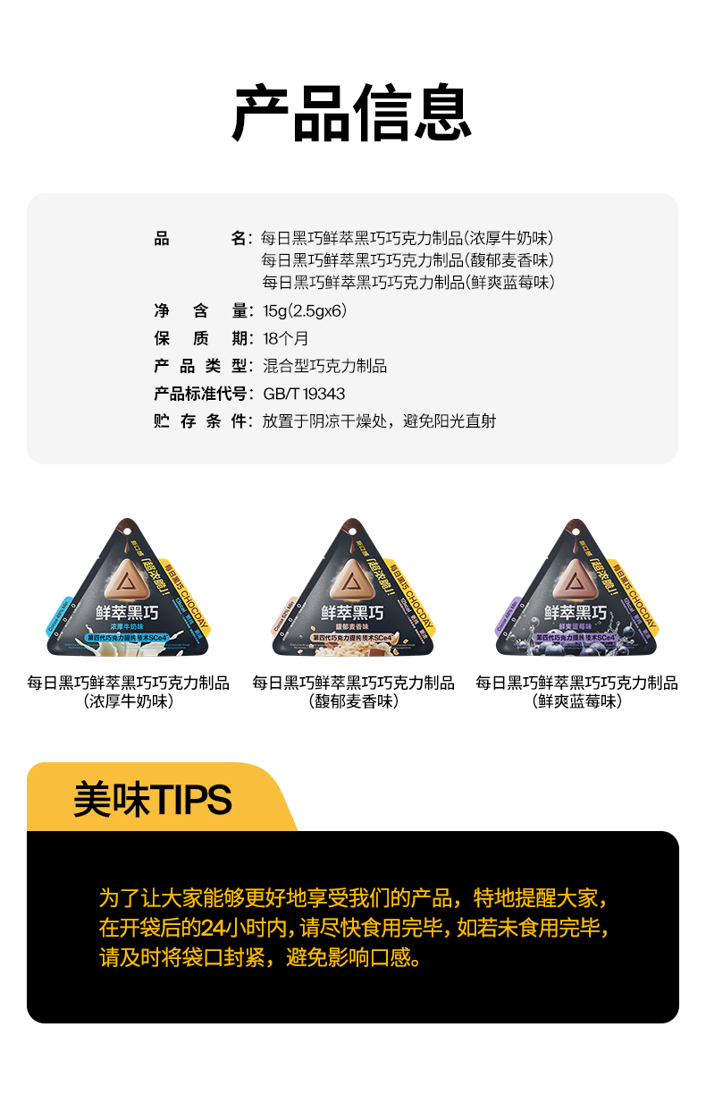 【新品上市】每日黑巧鲜萃黑巧6袋无白砂糖浓脆黑巧克力零食小吃