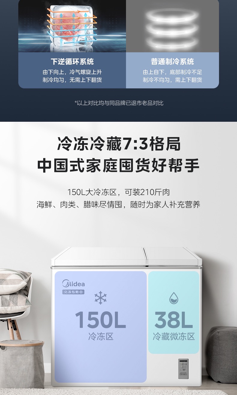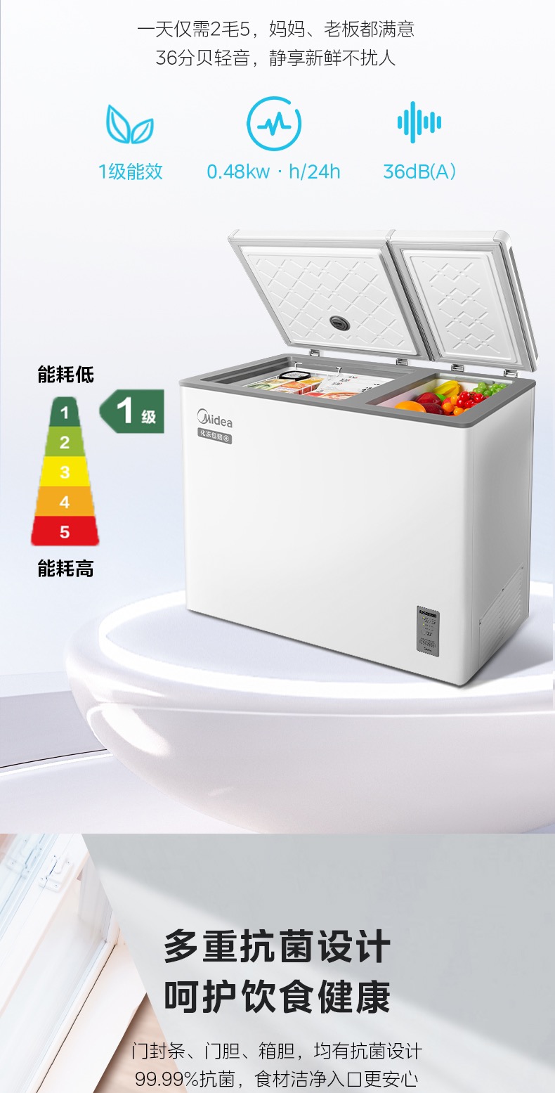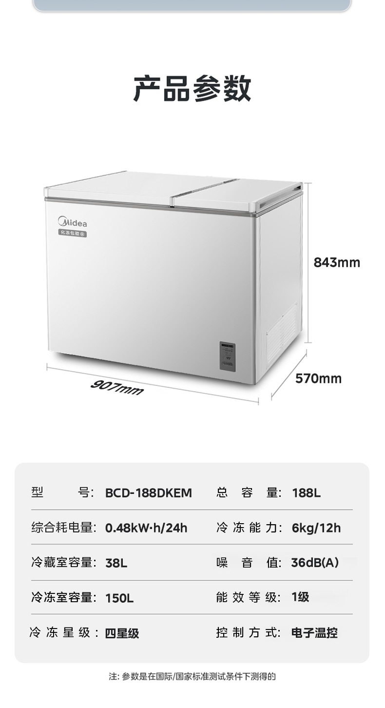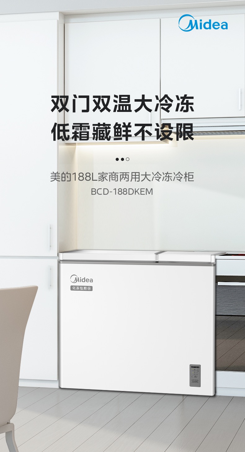 美的(202875)冷柜 BCD-188DKEM 极地白 188L 双温