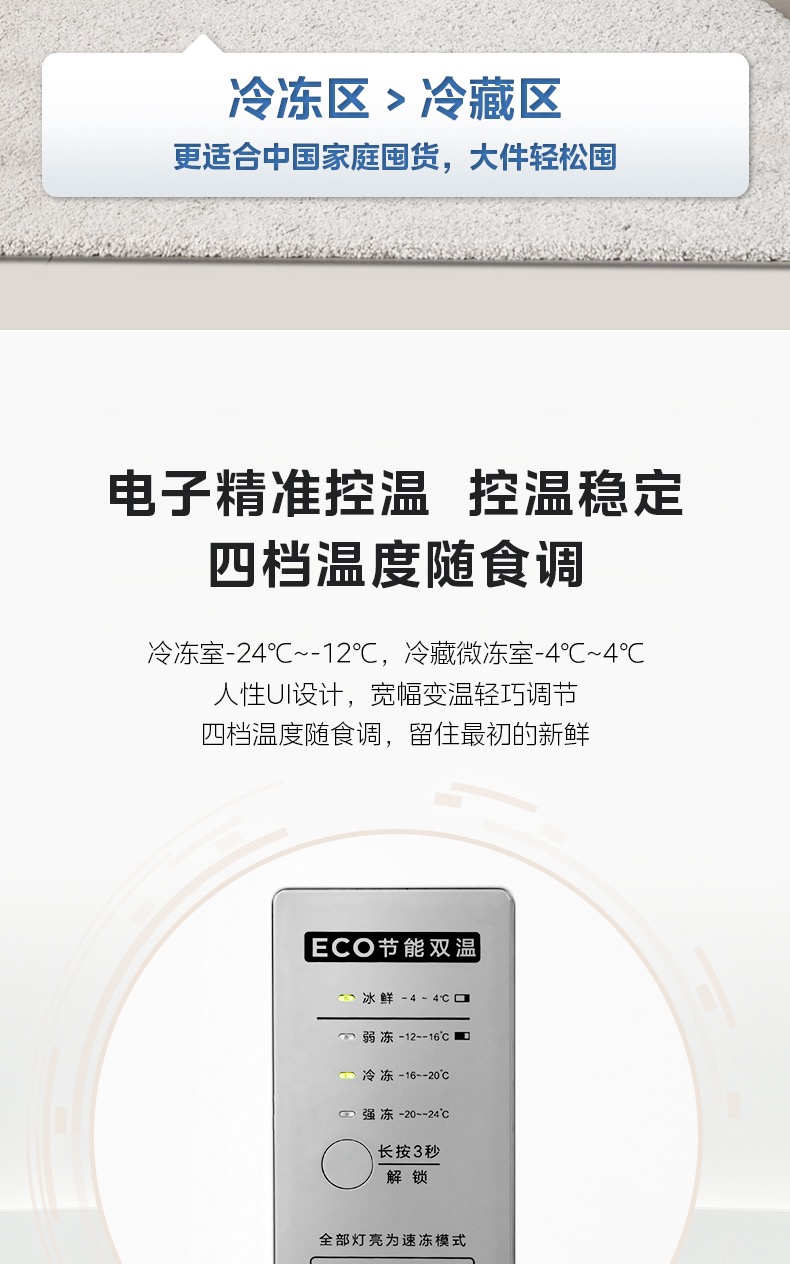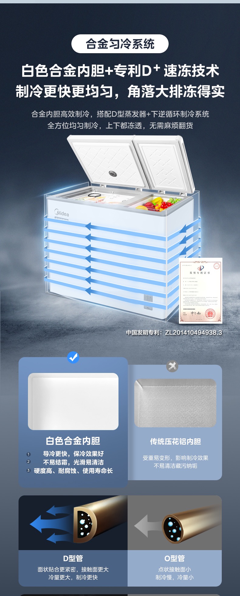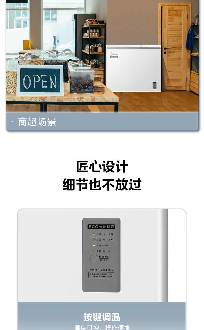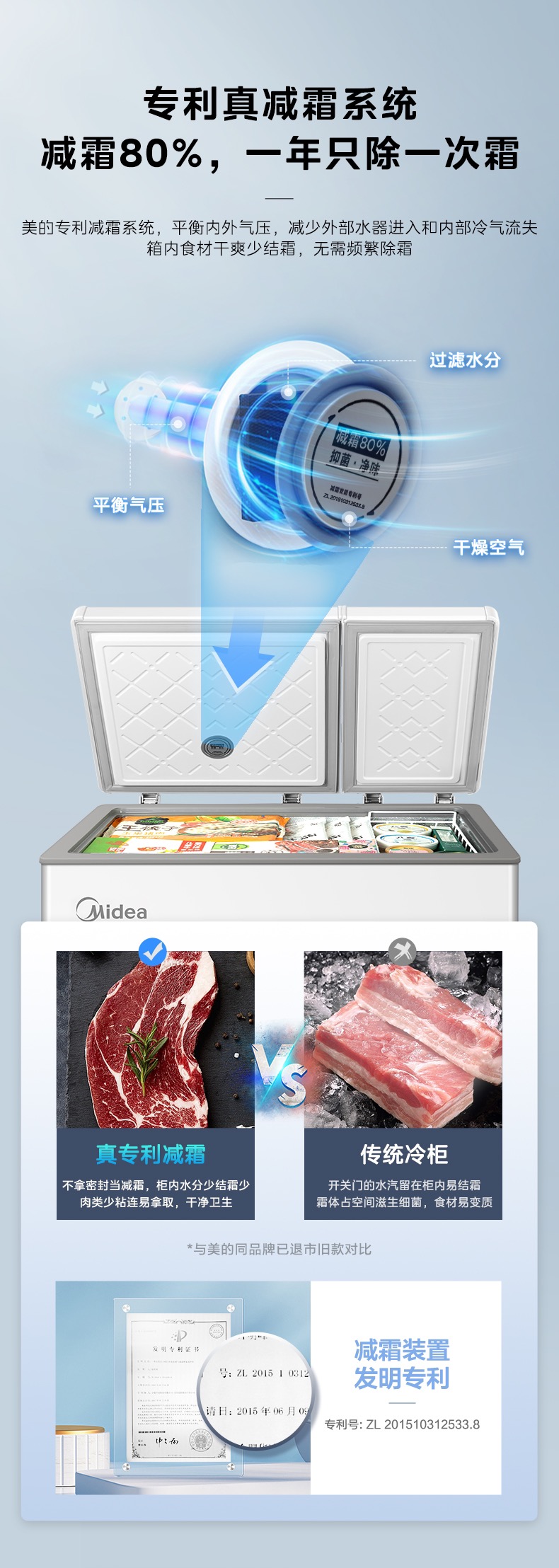 美的(202875)冷柜 BCD-188DKEM 极地白 188L 双温