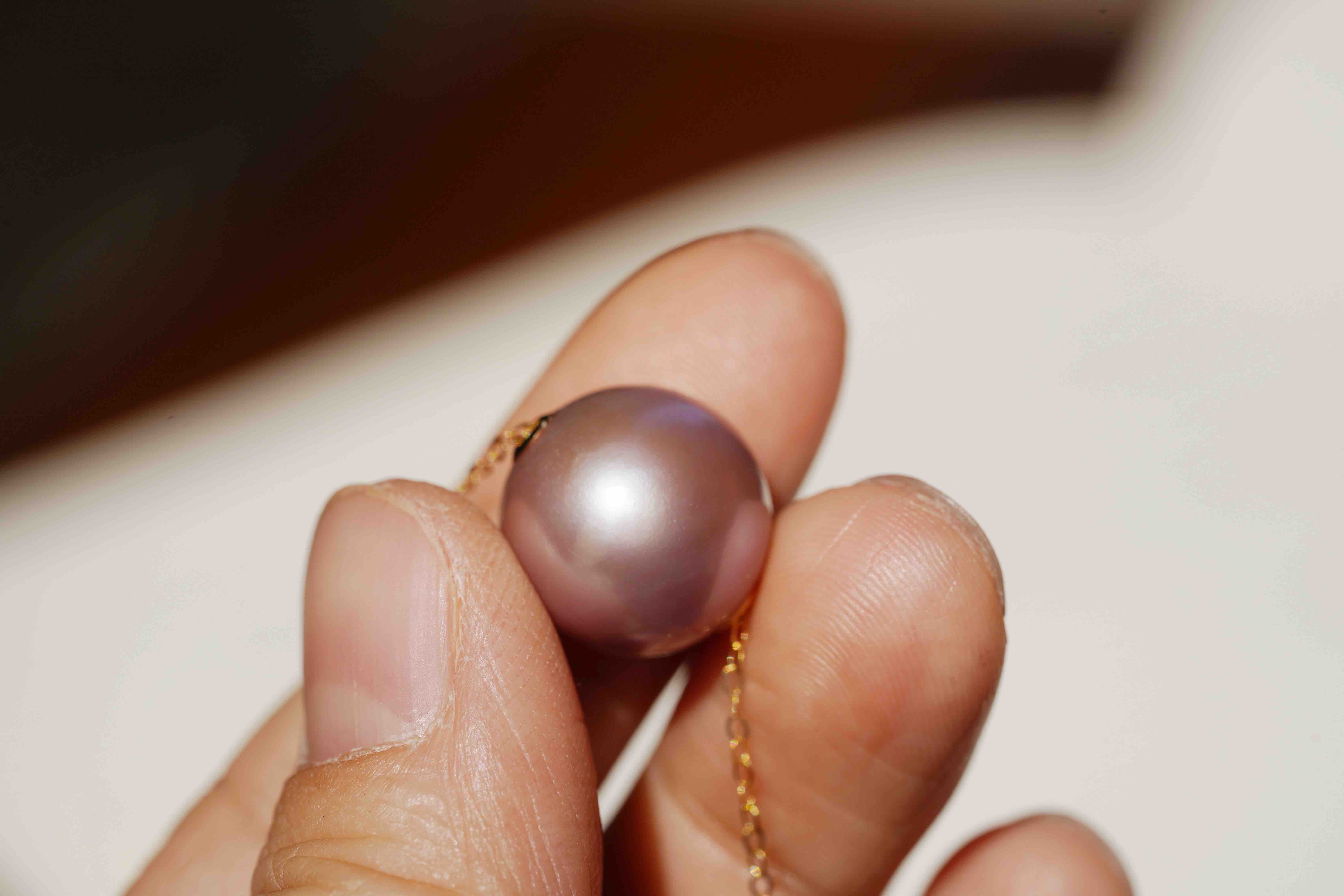 这个作品我们打了通孔做路路通,18k金链。如果最近一定要买一颗珍珠,选她。