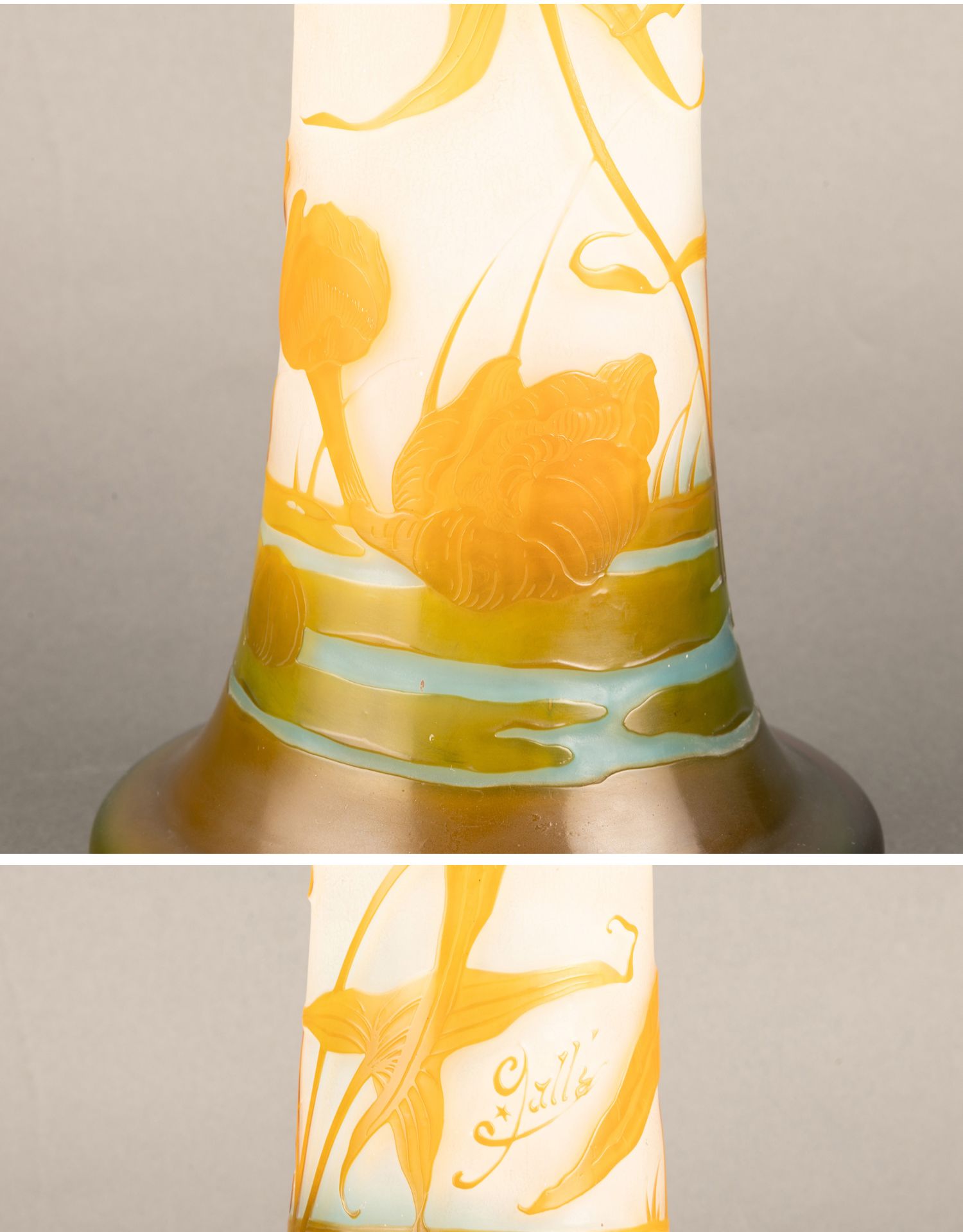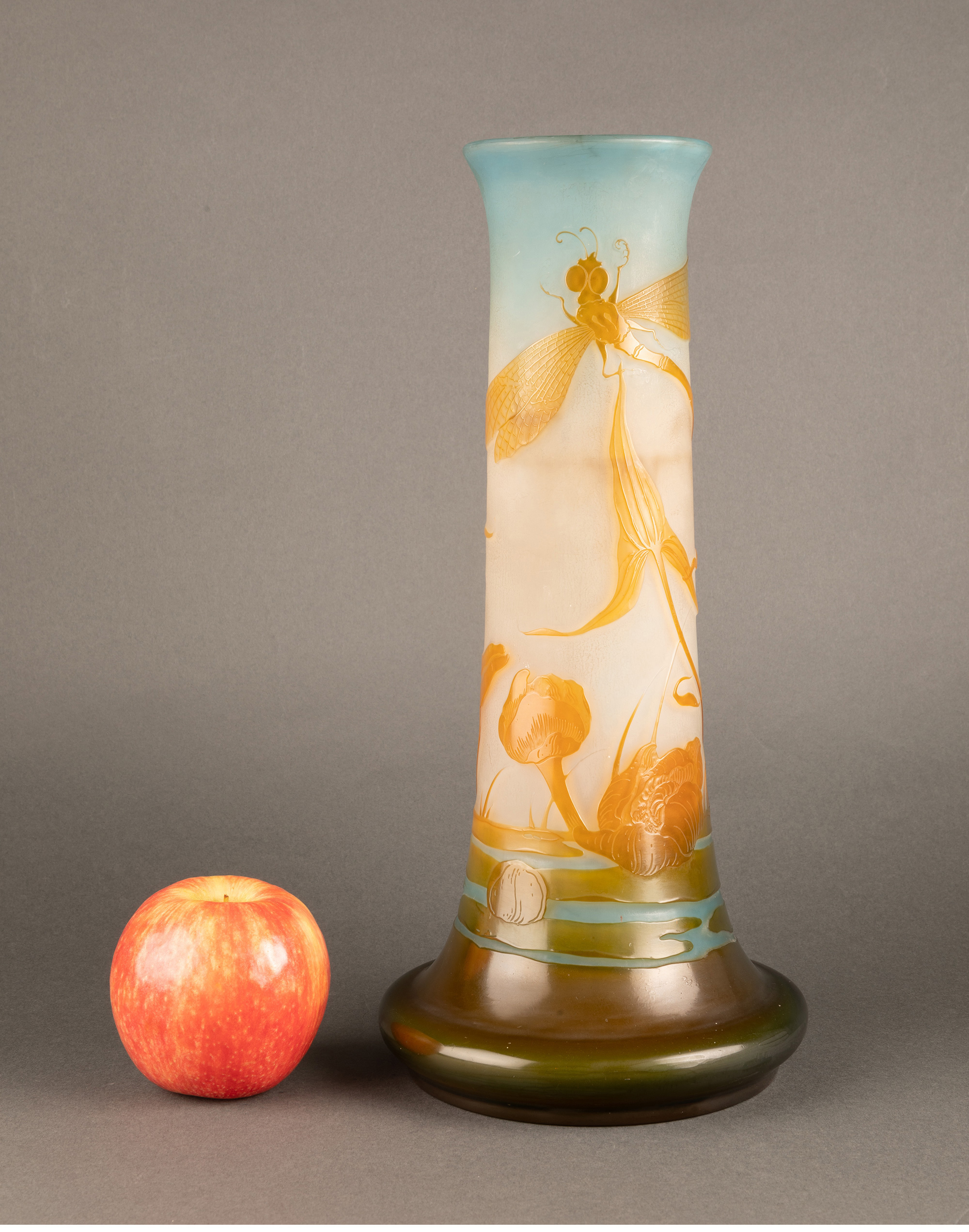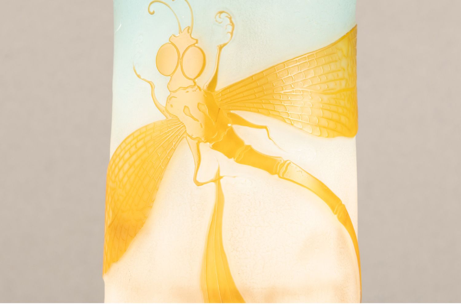 独角鹿西洋古董南锡派加莱⼯坊蜻蜓与睡莲脱蜡铸造工艺水晶花瓶