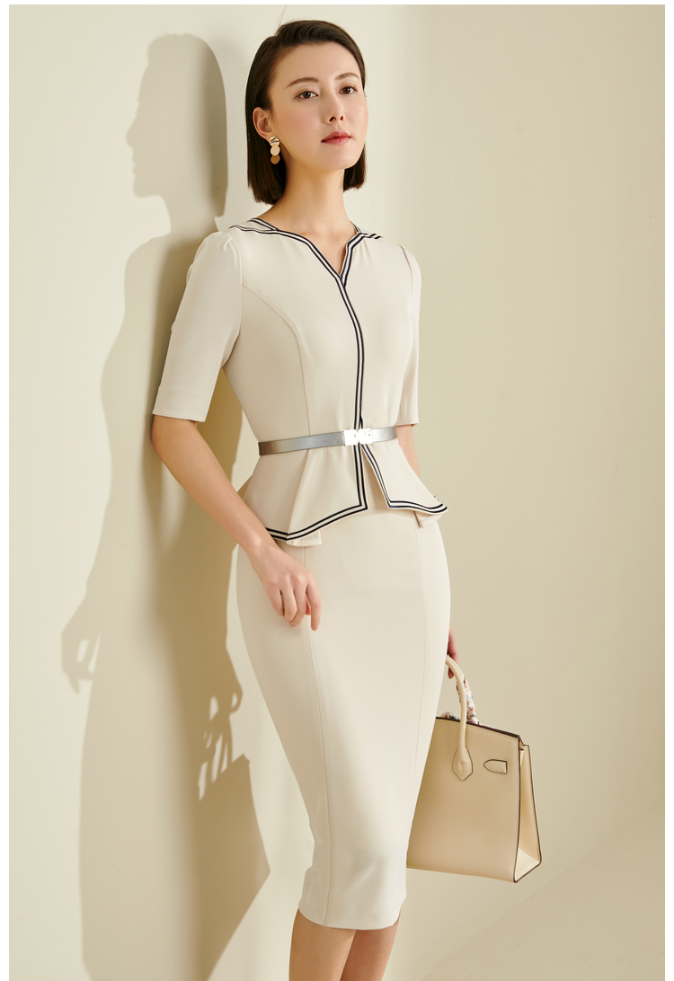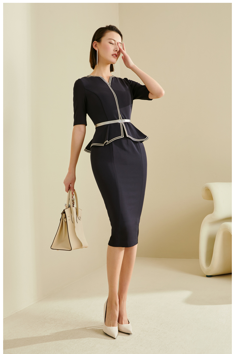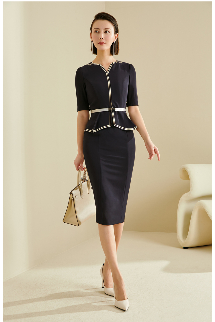 J7280142T1x5 颈袖添香春夏气质商务女装修身包臀显瘦蓝色职业工作装连衣裙 蓝色职业工作装短袖连衣裙