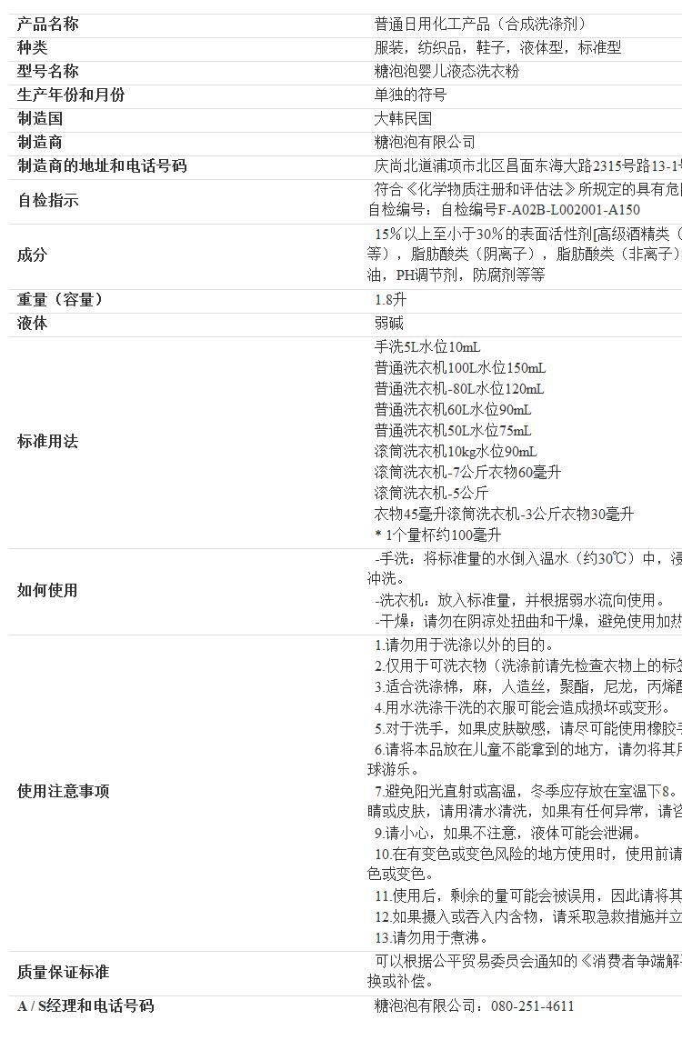 韩国Sugar Bebe Baby Laundry Detergent 婴儿宝宝专用洗衣液1.8LJPY带授权招加盟代理