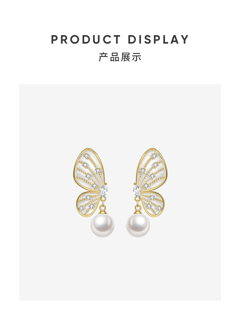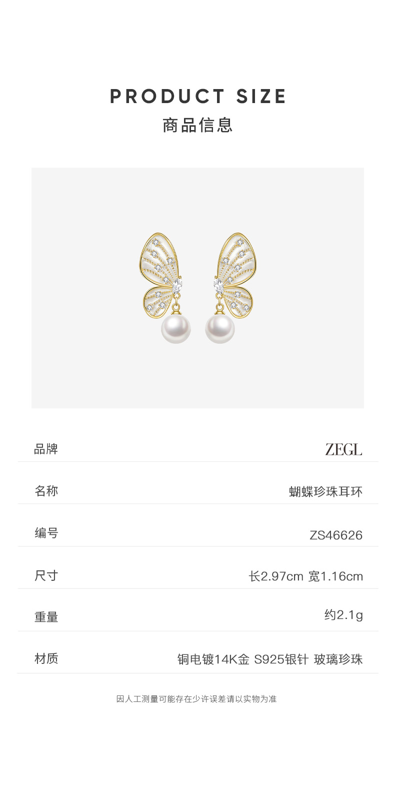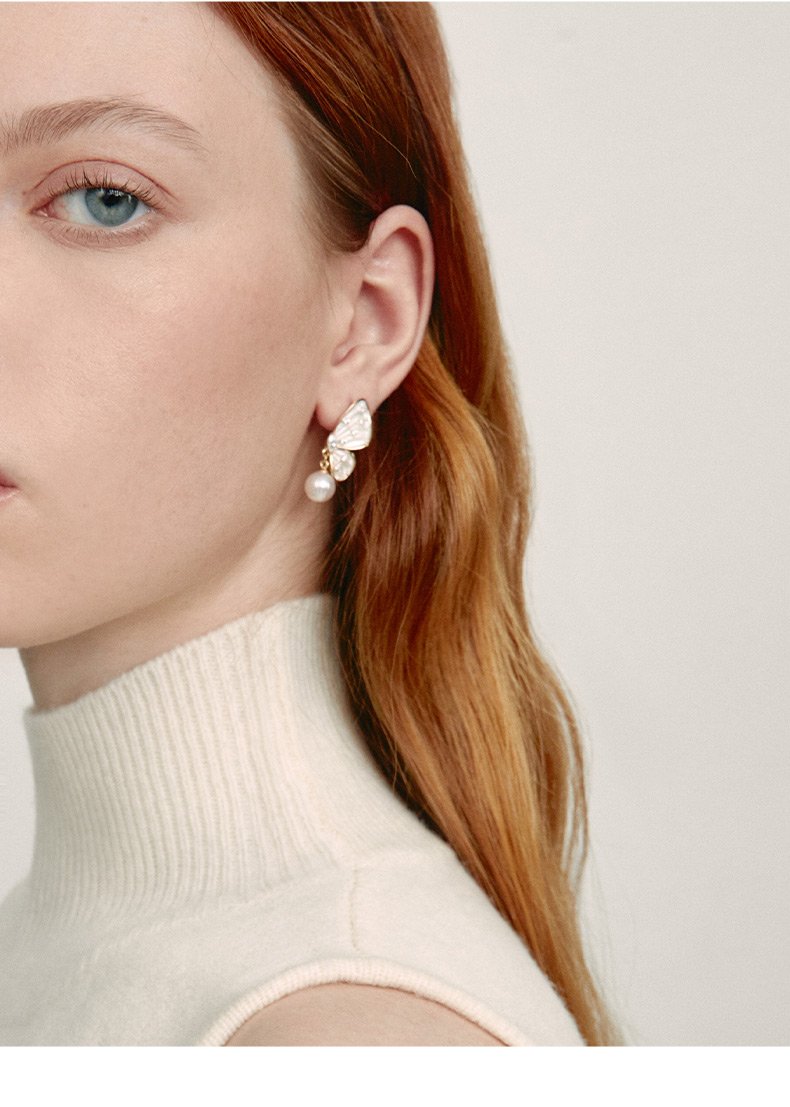 ZEGL法式蝴蝶人造珍珠耳环女2024新款爆款秋冬耳钉高级感银针耳饰
