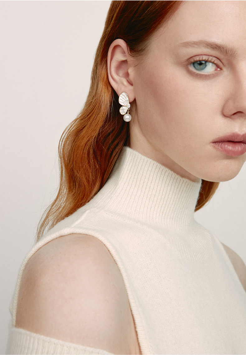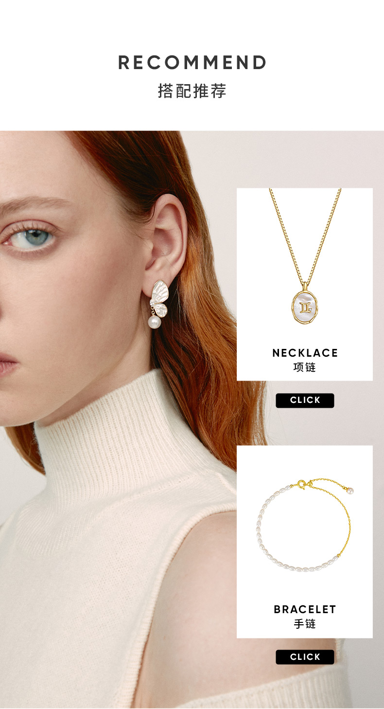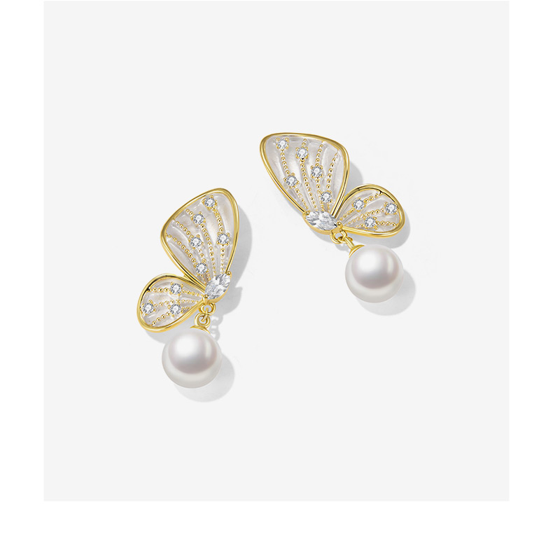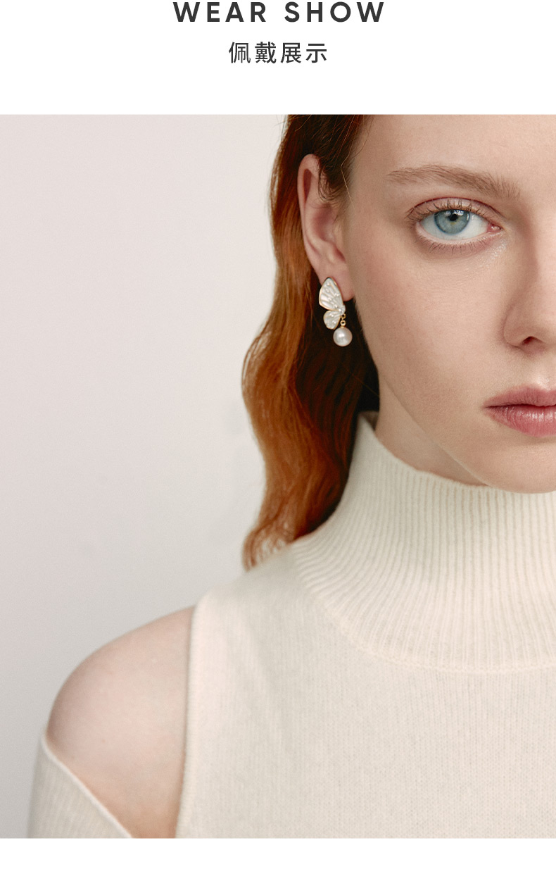 ZEGL法式蝴蝶人造珍珠耳环女2024新款爆款秋冬耳钉高级感银针耳饰
