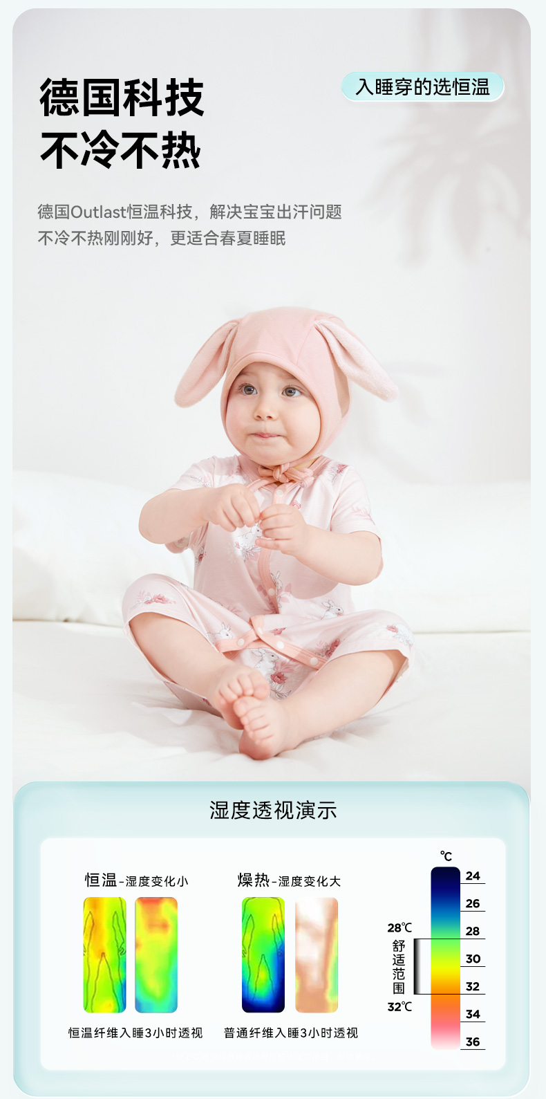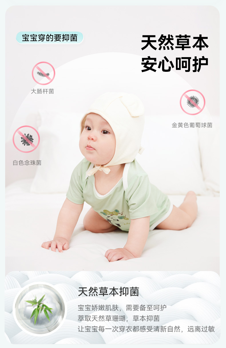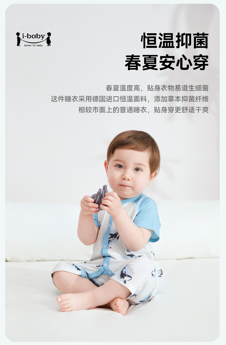 【秒杀】ibaby×outlast太空科技恒温抑菌针织长袖/短袖连体衣 薄款春夏装