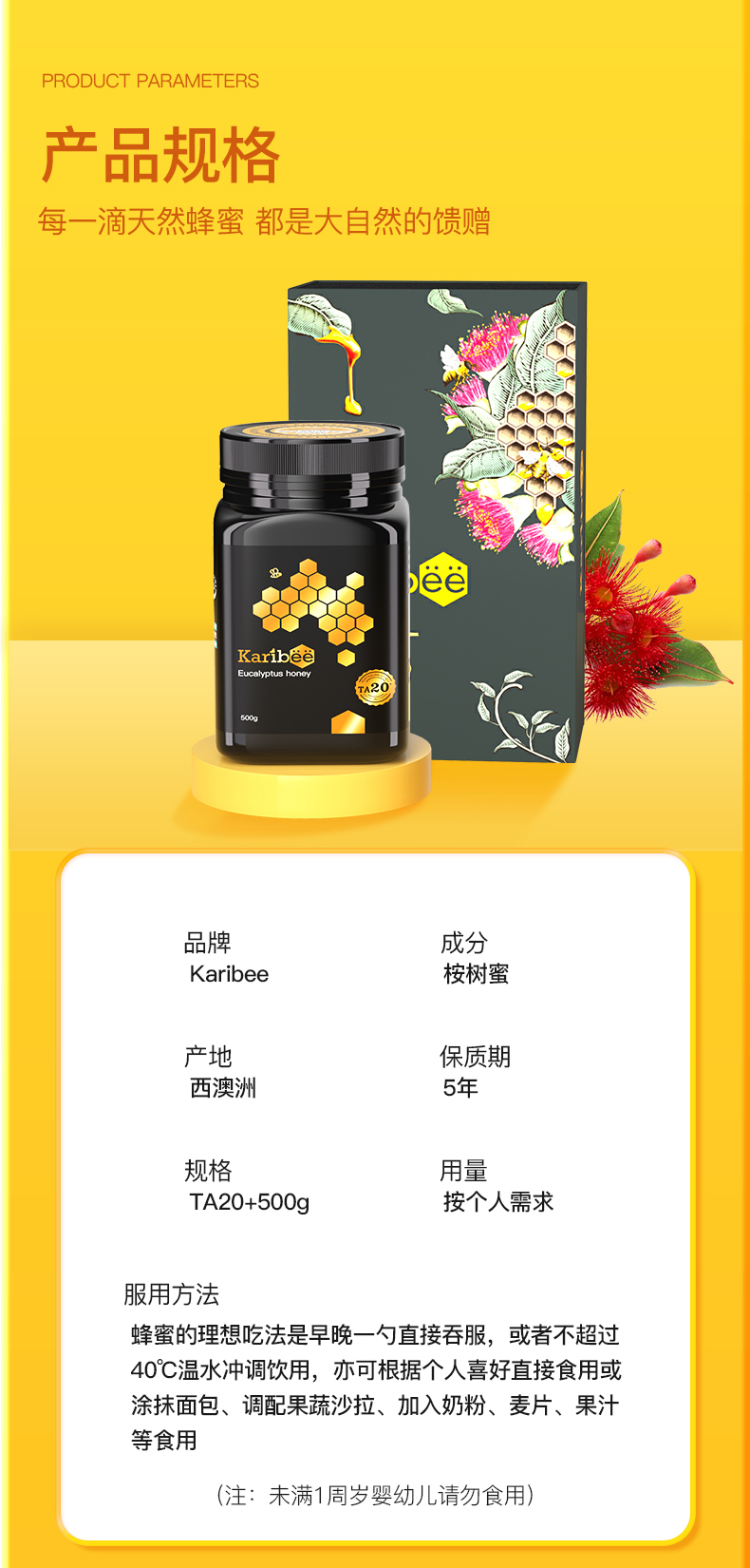 Karibee可瑞比桉树蜜TA20+ 500g澳洲原装进口