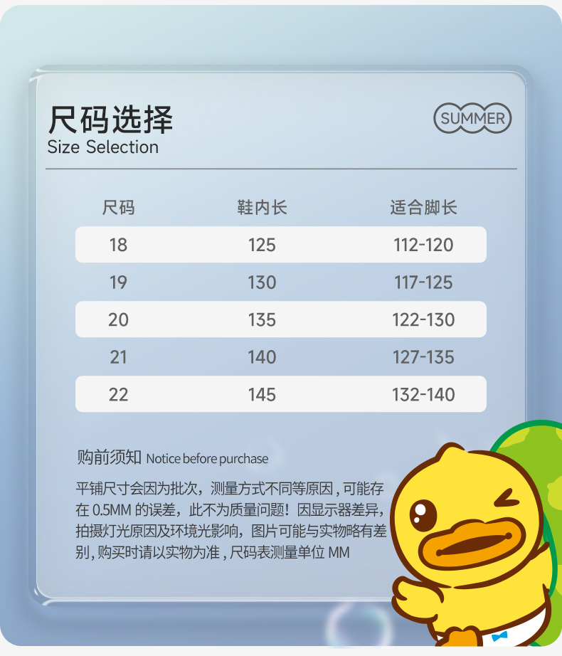 B.Duck小黄鸭童鞋夏季儿童凉鞋18-22 BY2489801