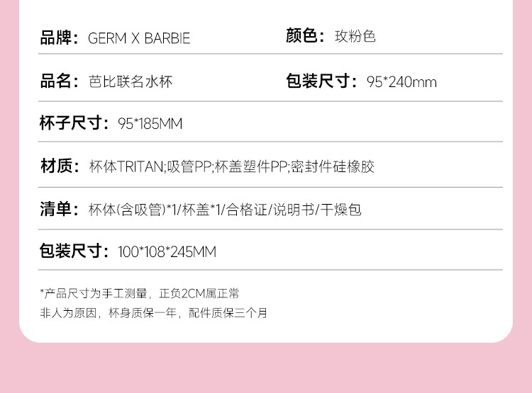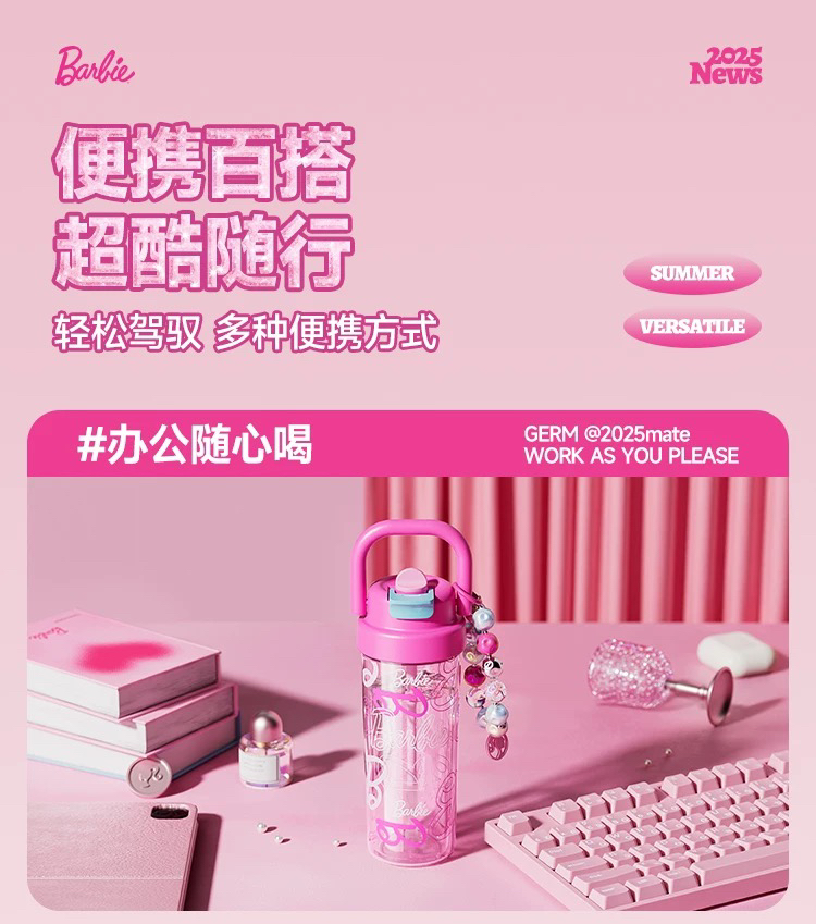 格沵 杯壶类塑料杯芭比夏日悠享杯(涂鸦粉)