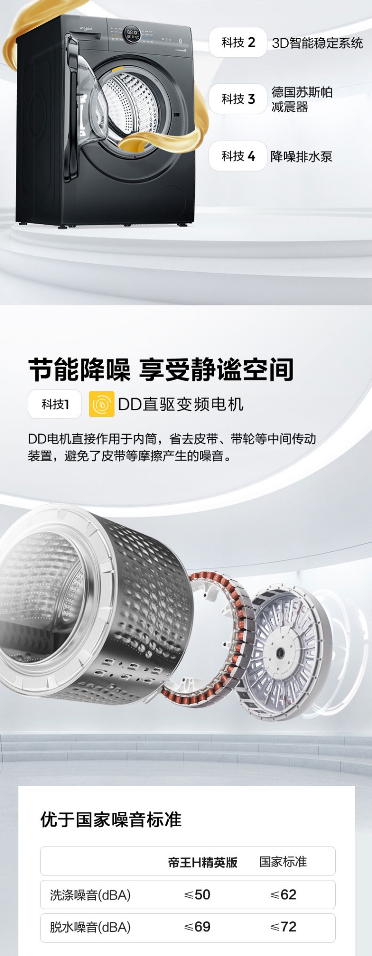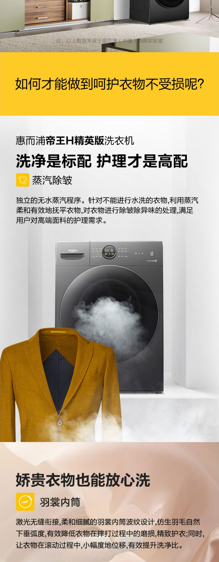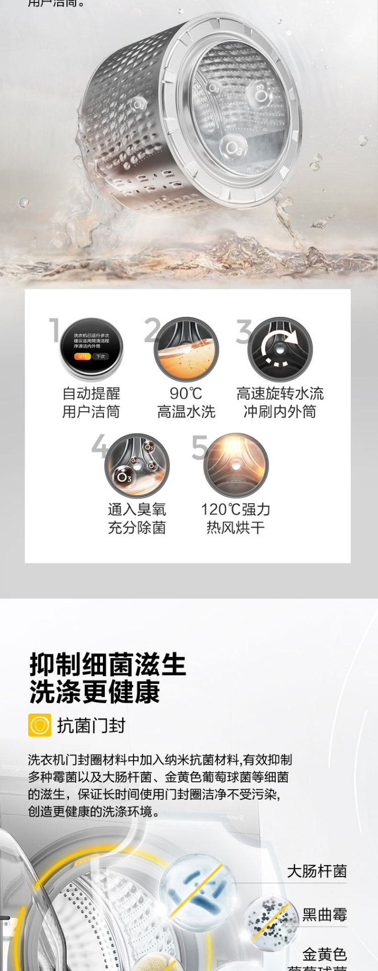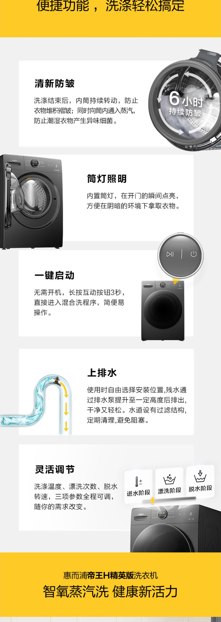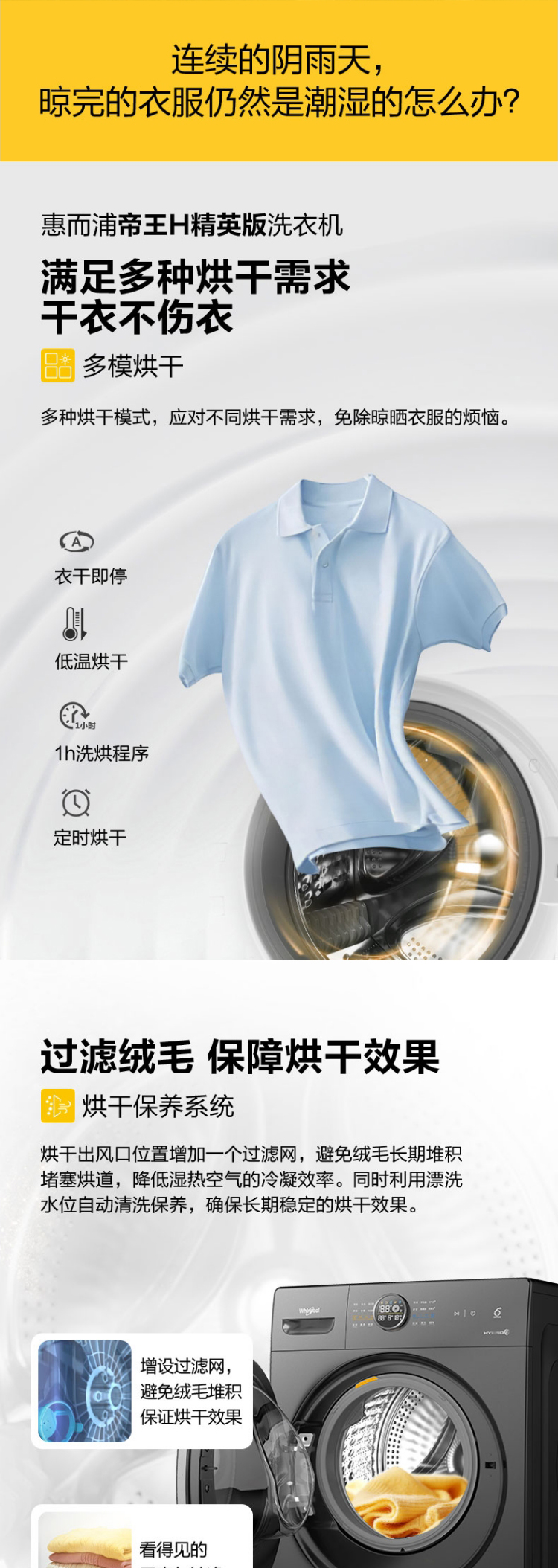 惠而浦(Whirlpool)10公斤洗烘一体洗衣机臭氧+蒸汽混动除菌空气洗帝王H精英版DD直驱变频 WDD102724SORT