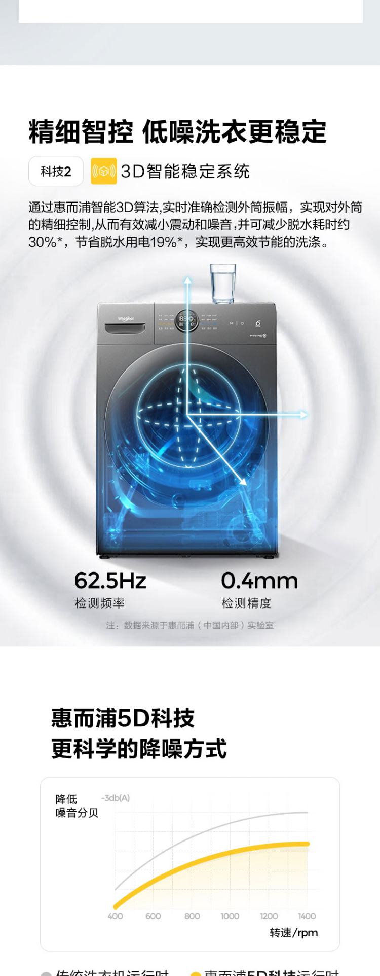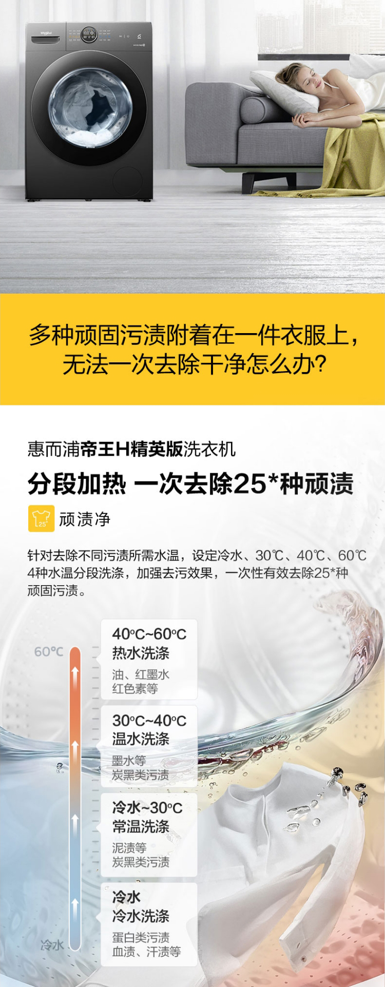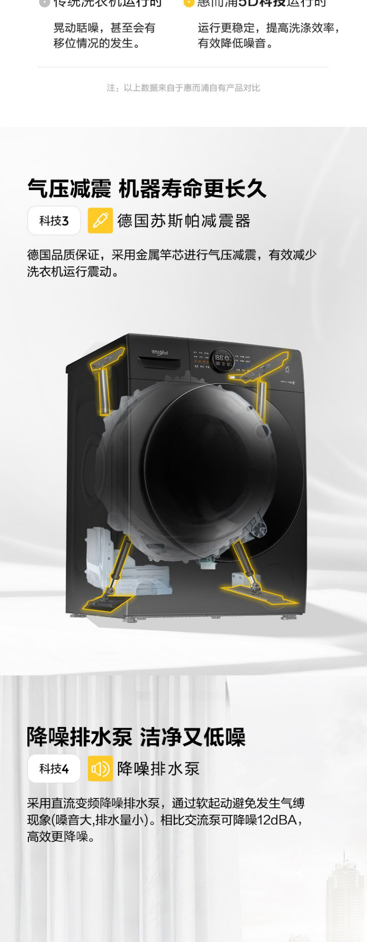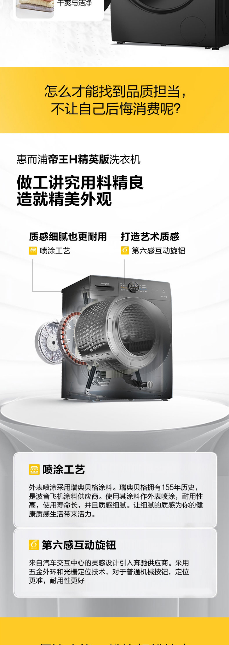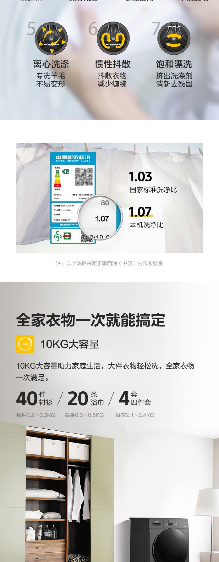 惠而浦(Whirlpool)10公斤洗烘一体洗衣机臭氧+蒸汽混动除菌空气洗帝王H精英版DD直驱变频 WDD102724SORT