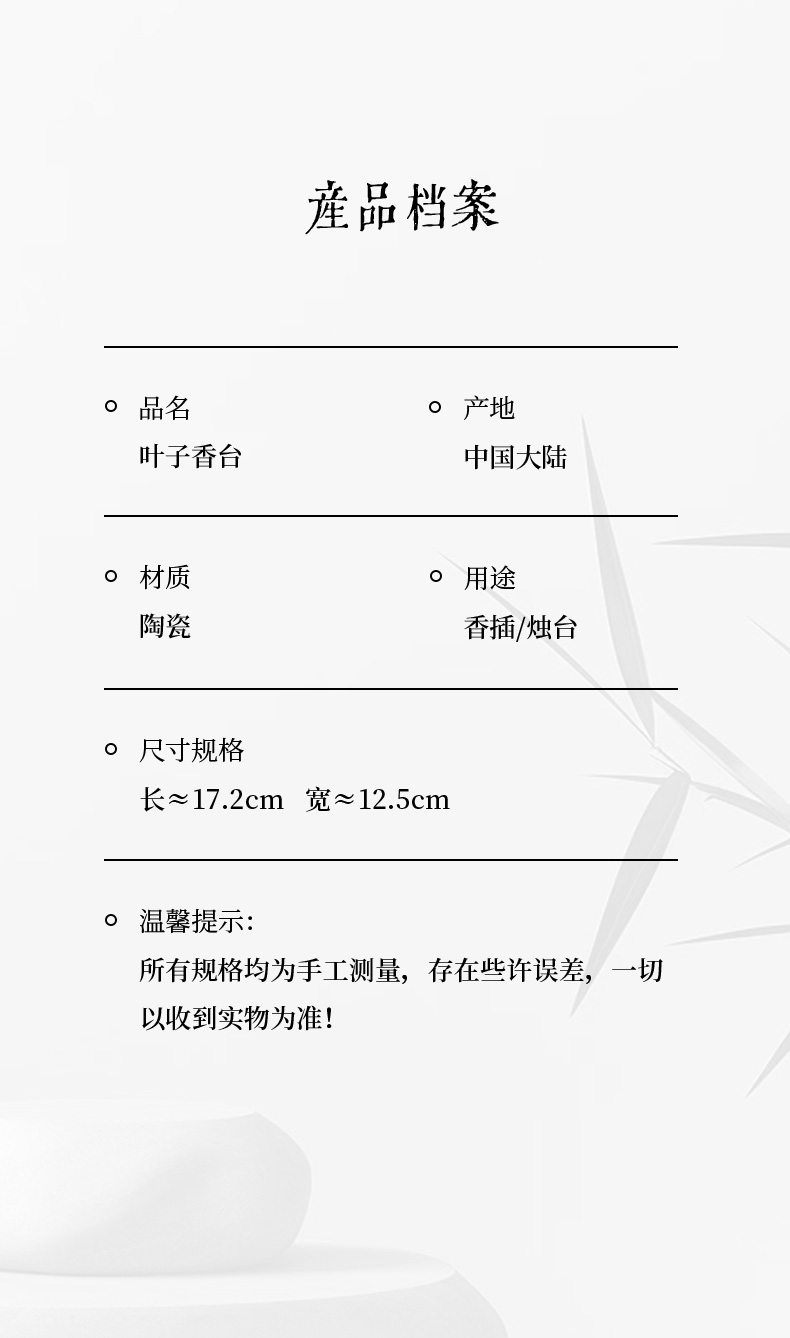 叶子香台创意陶瓷树叶香插线香香座熏香道具香托烛台配件