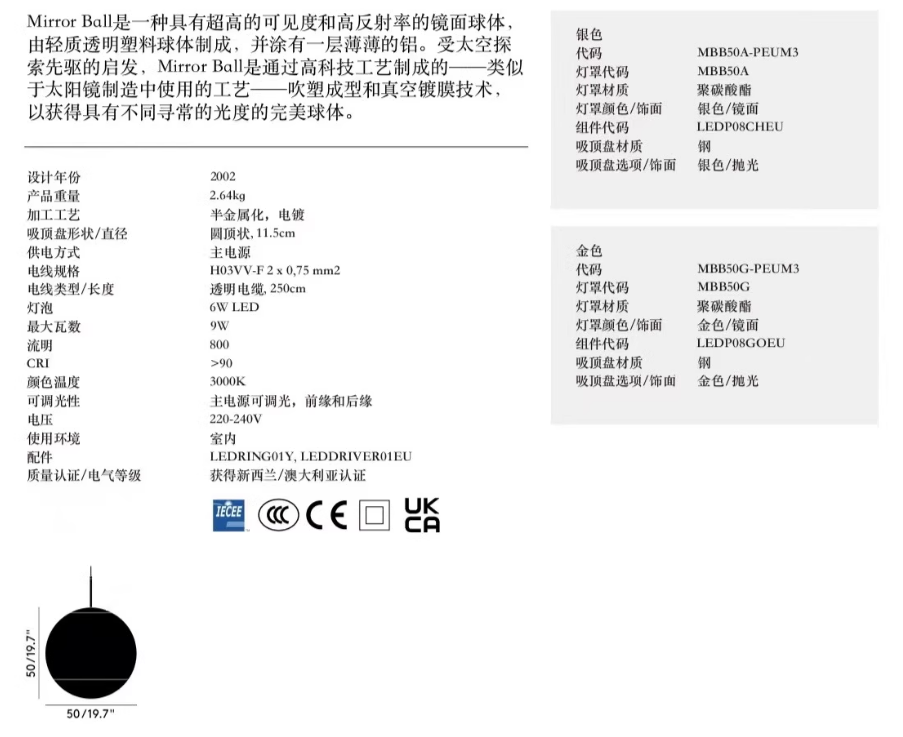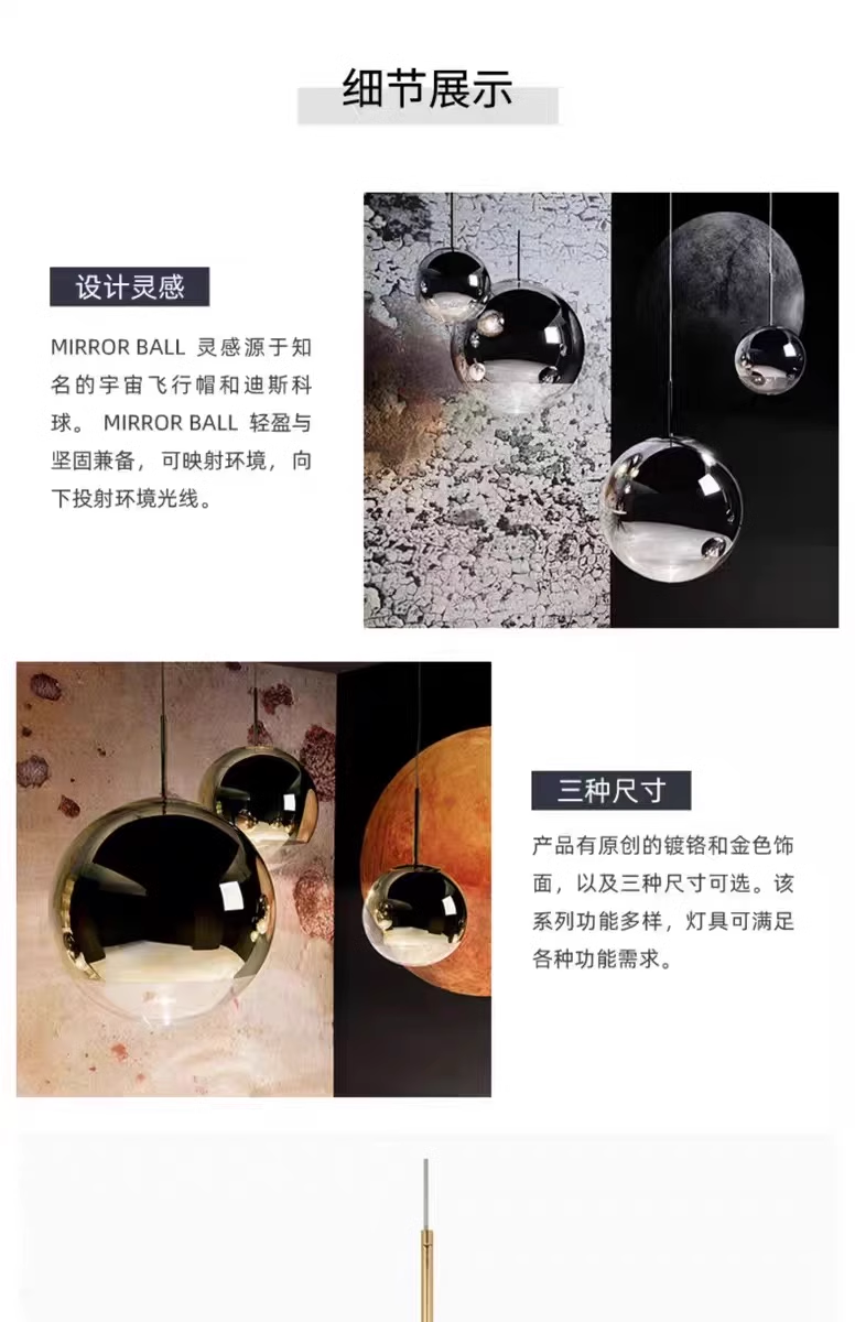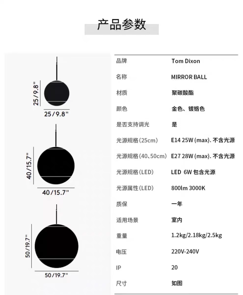 英国Tom Dixon MIRROR BALL吊灯现代简约客餐厅吊灯
