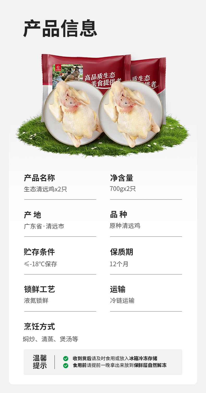 2、鸡肉(整只)两份装(700g/份*2),团购价 139元,每份送2包清鸡汤+2包汤料