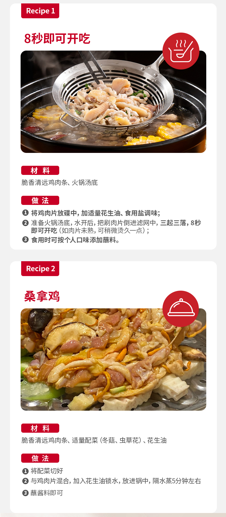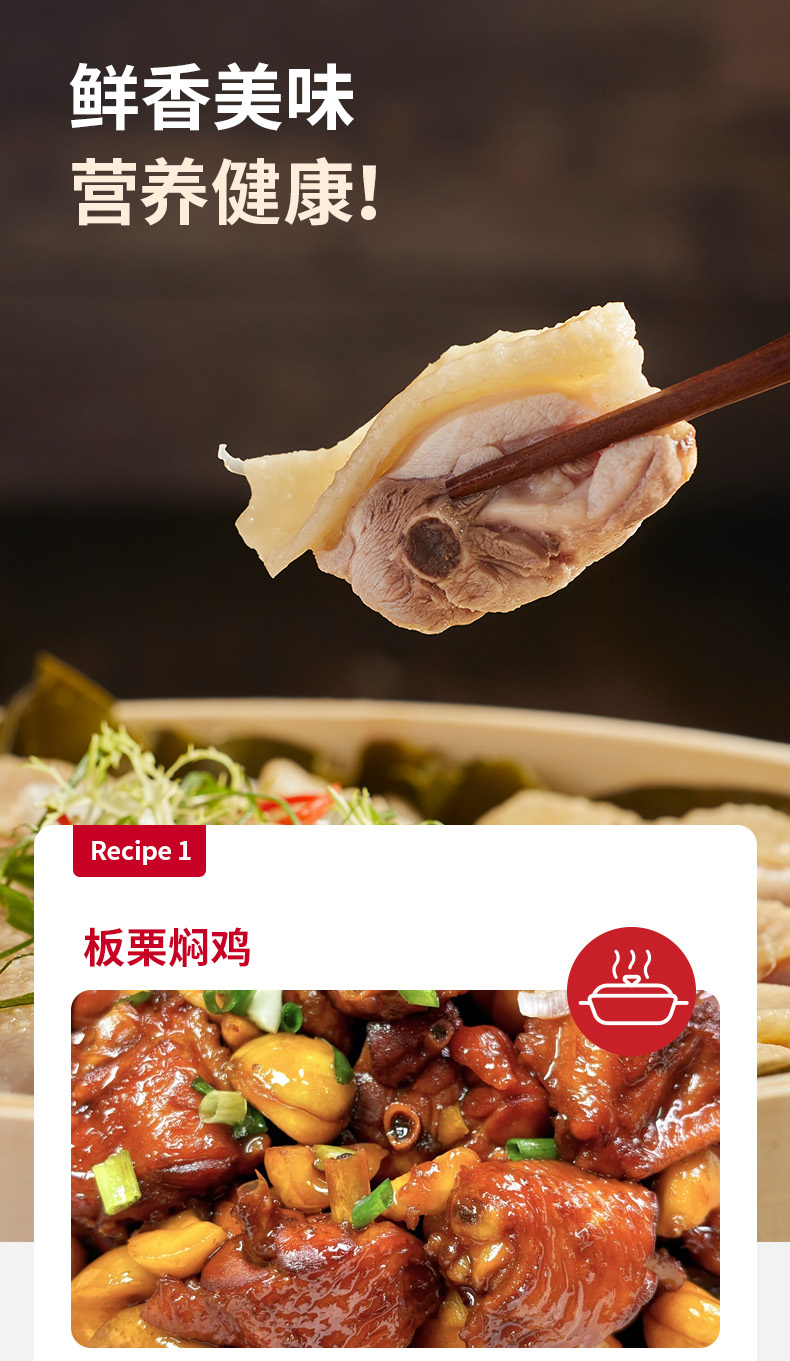 1、鸡肉(切块)两份装(700g/份*2),团购价 145元,每份送2包清鸡汤+2包汤料