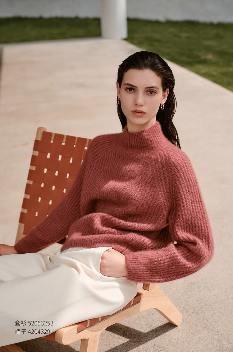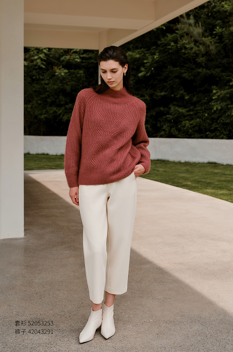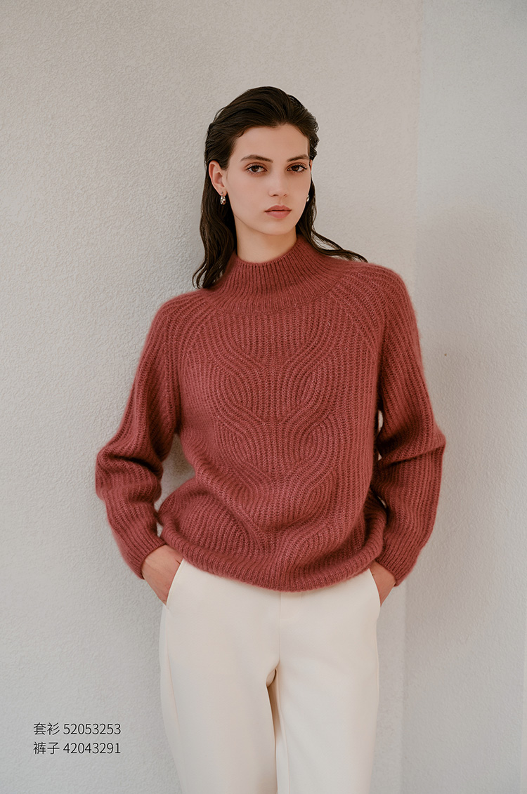 【半高领立体绞花毛衣】羊绒世家秋冬新款女士针织保暖毛衣时尚绞花羊绒套衫