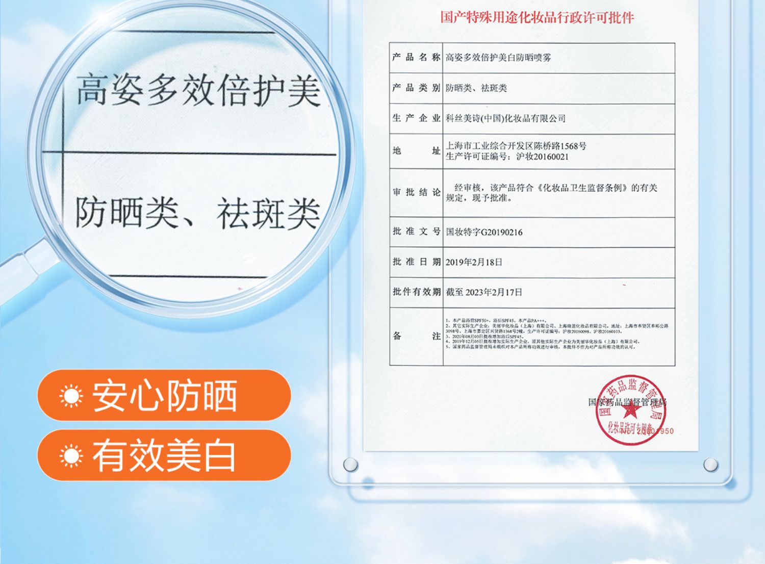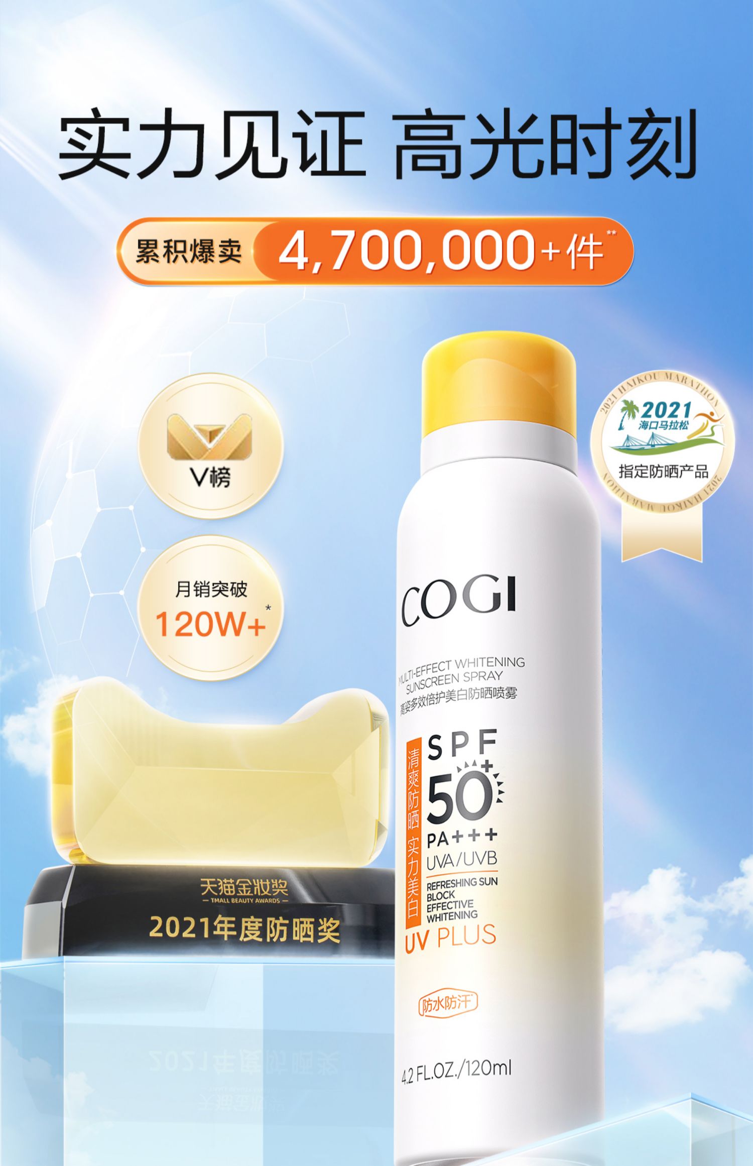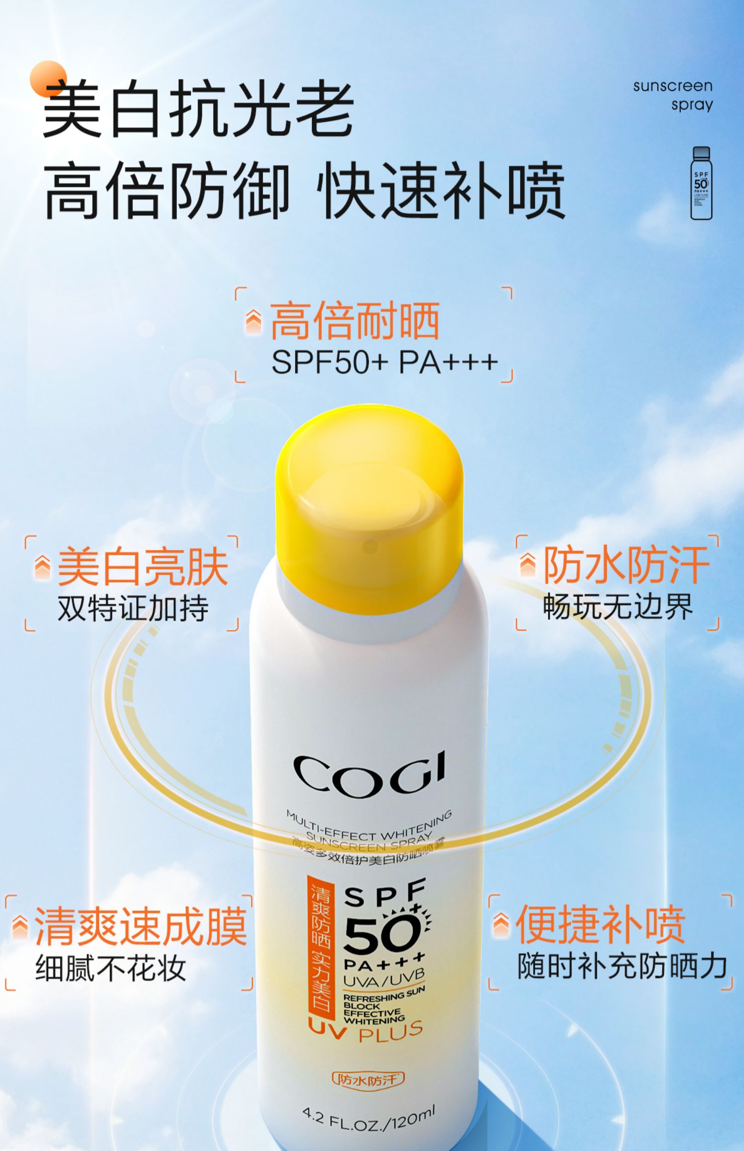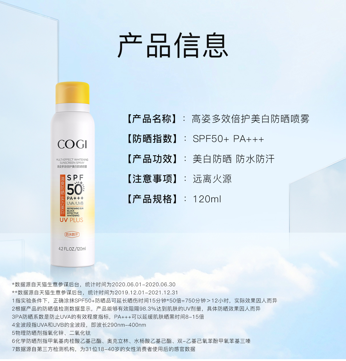 高姿多效倍护美白防晒喷雾SPF50+PA+++120ml (中国火箭版)