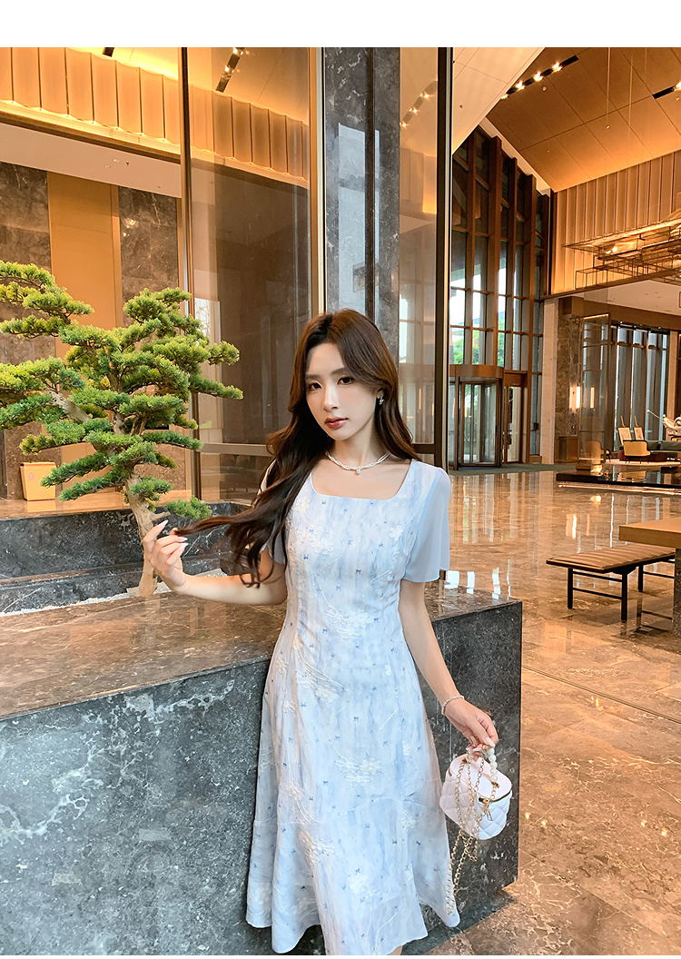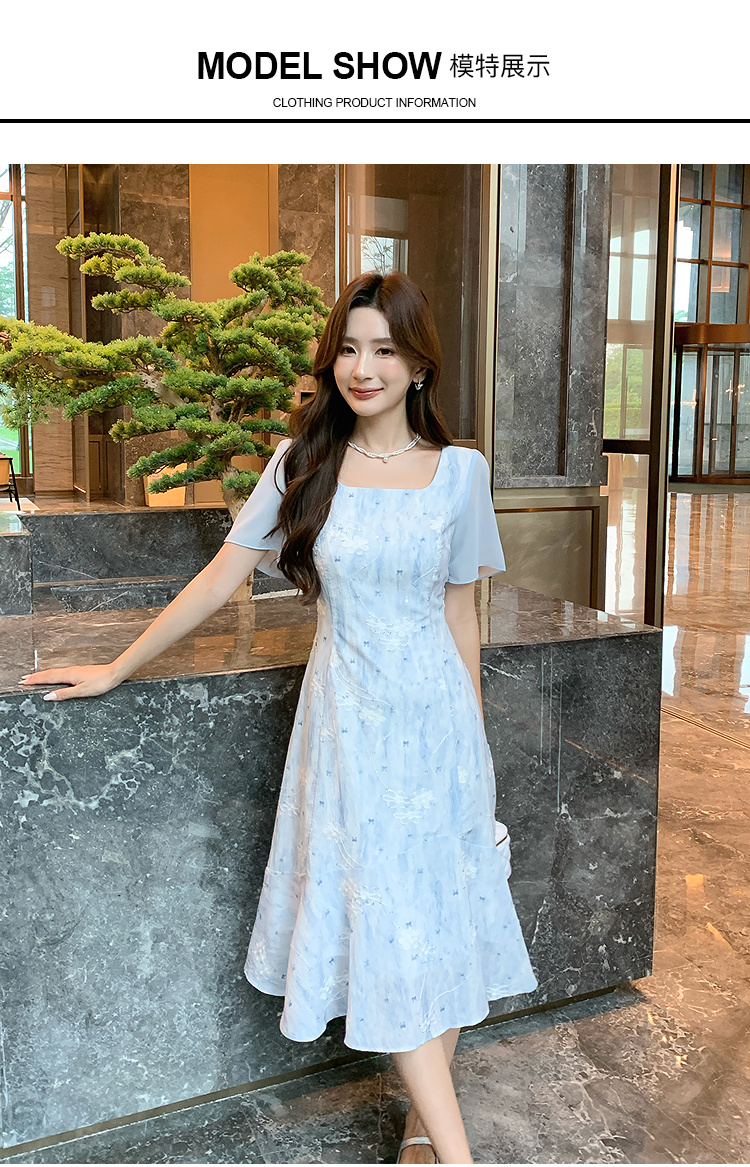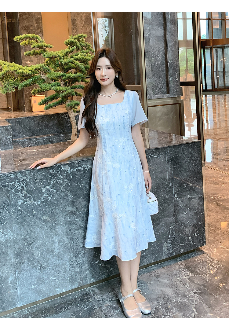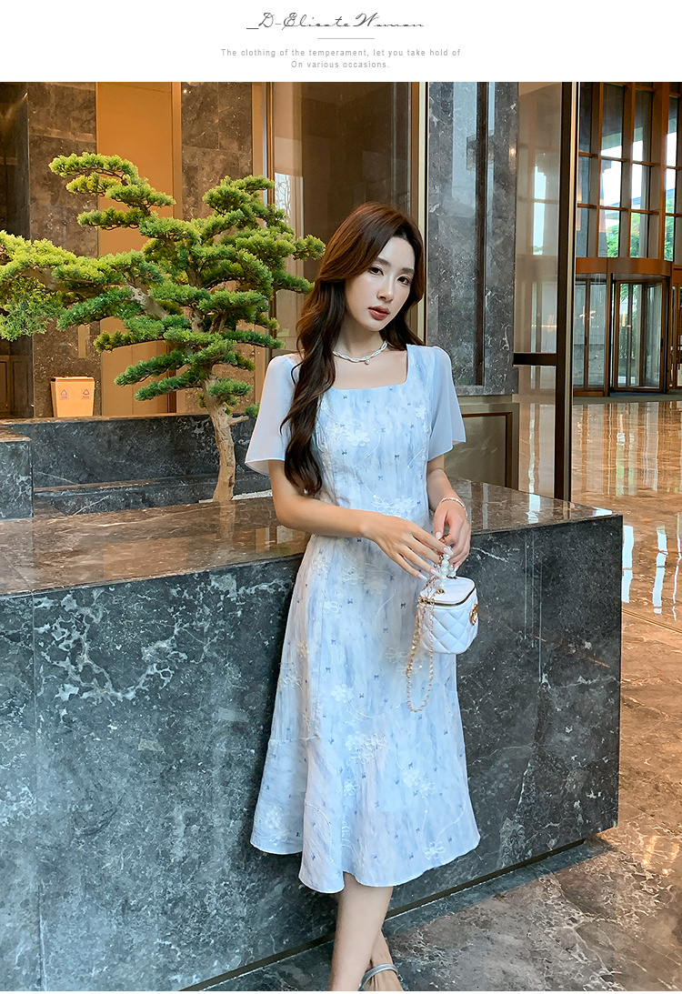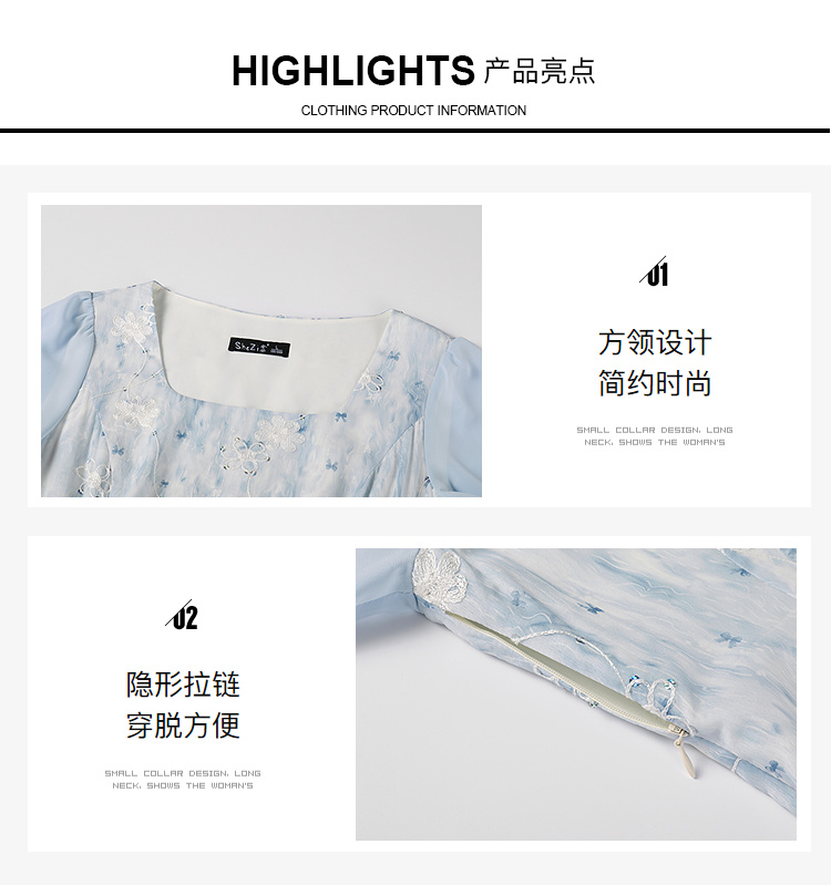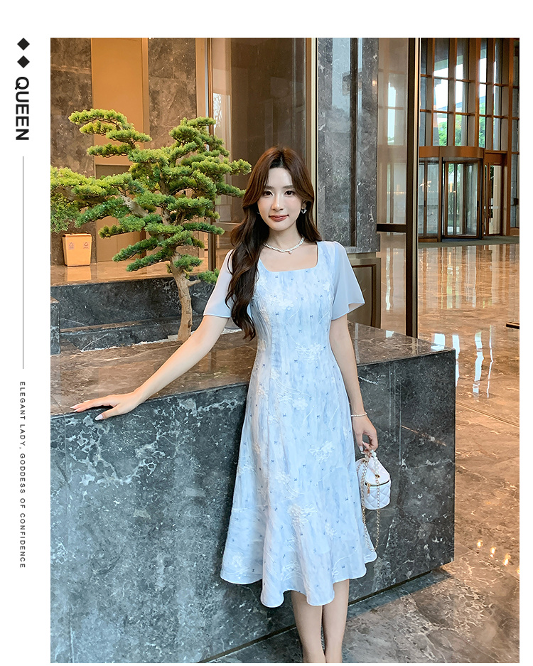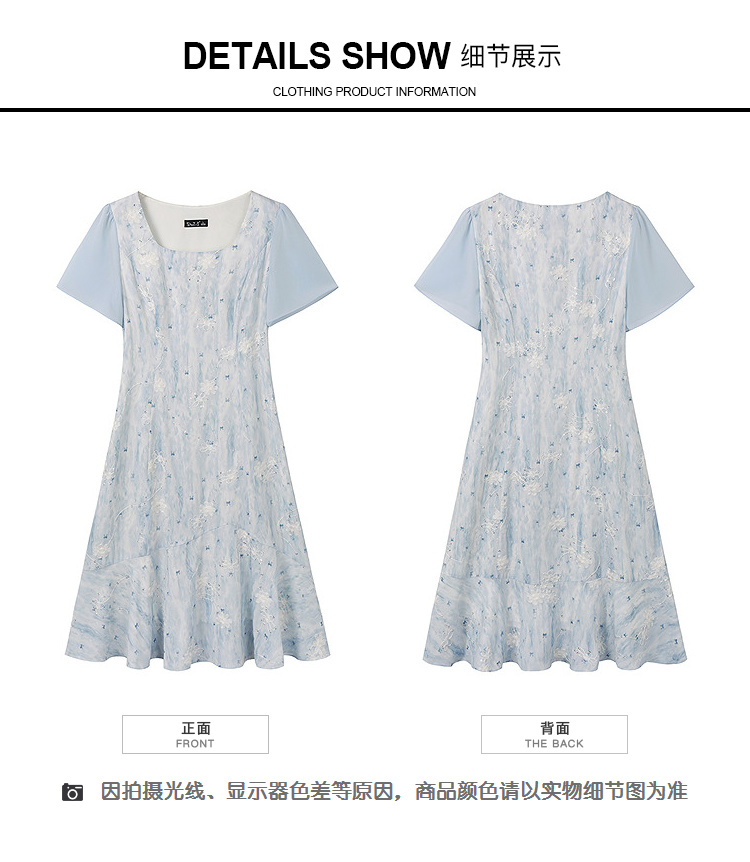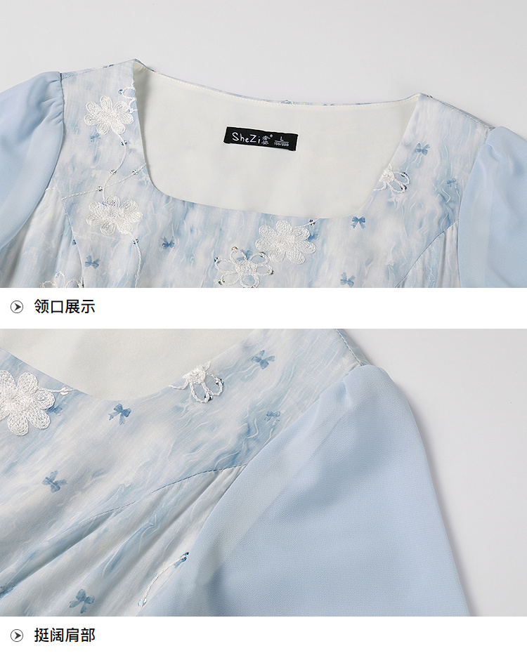 奢姿大码女装2026夏季复古方领连衣裙胖妹妹时尚刺绣提花拼接裙子9952822149