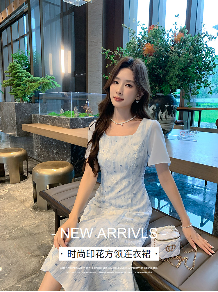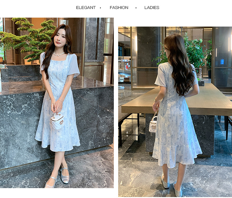 奢姿大码女装2026夏装碎花方领连衣裙泡泡袖胖妹妹减龄法式长裙9962832256