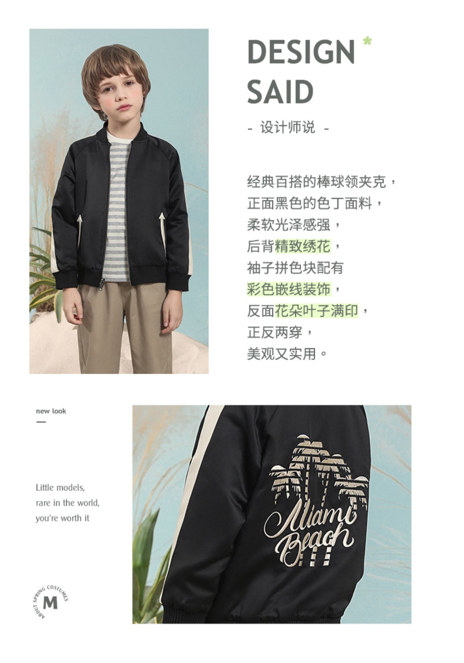 【男童双面穿夹克】童装棒球领运动休闲外套男童春季新款棒球服上衣